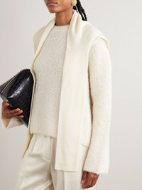 Tapping into classic preppy styling, TOTEME's scarf is designed to look like a sweater tied over your shoulders. It's made from sumptuous cashmere with traditional ribbed trims and a tonal embroidered logo. Details & Care - White cashmere - 100% cashmere - Hand wash