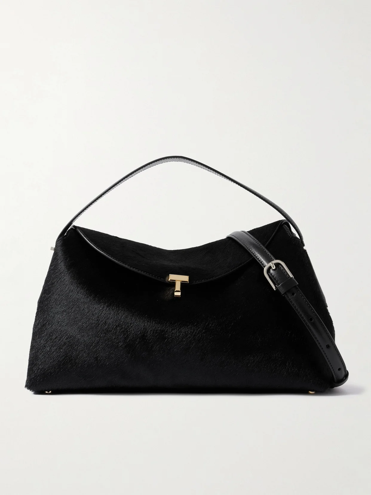 TOTEME's shoulder bag is named for its polished 'T-Lock' fastening, which is the stand-out feature of the minimal design. Made in Italy from pony hair, it has a curved shape traced with meticulous topstitching, and comes with protective feet and a detachable leather shoulder strap, so you can go hands-free. The interior has enough space for a continental wallet, sunglasses case and a cosmetics pouch.