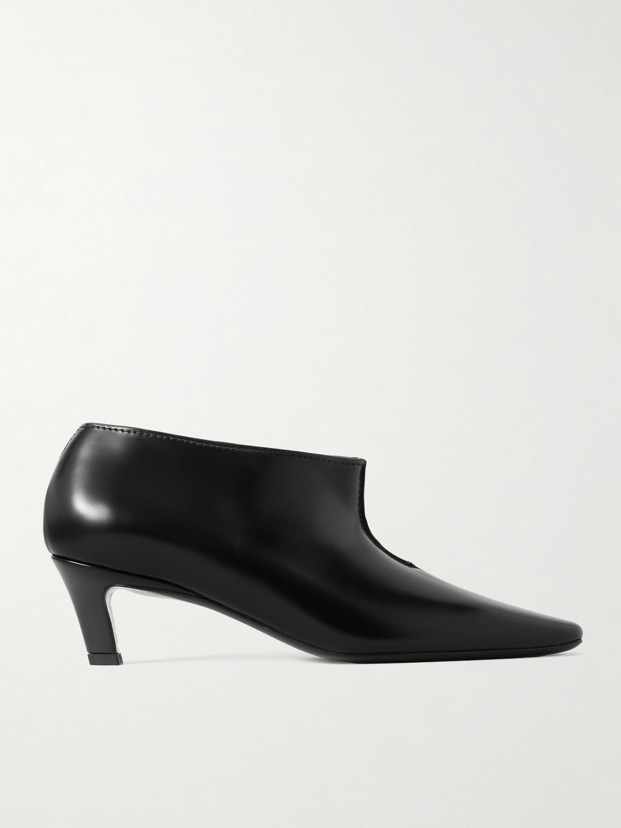 TOTEME's aptly named boots have a 'Wide Shaft' that sits just below the ankle. Crafted in Italy from glossed-leather, they have elongated squared toes and 55mm curved kitten heels. Show yours off with midi dresses and cropped tailoring.