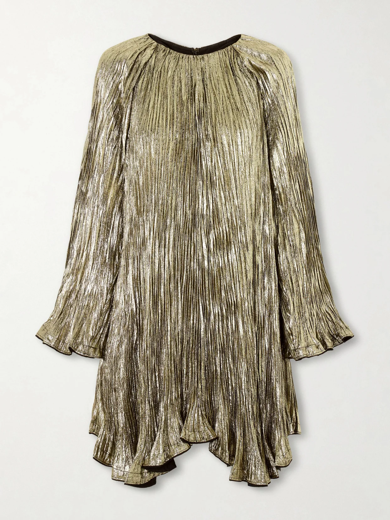 Ulla Johnson's 'Claire' dress will illuminate your wardrobe thanks to the Lurex threads that glisten from every angle. Made from plisse-satin, it has floaty angel sleeves and a fluted mini hem that'll swish and sway as you move.
