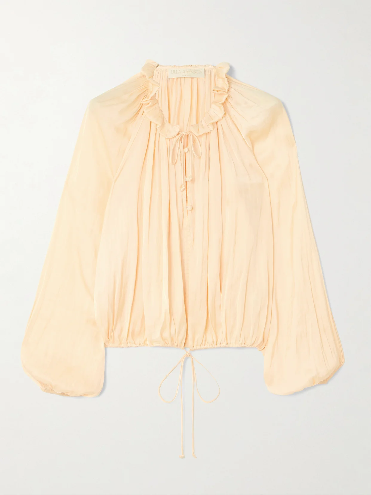 Like so many of the label's designs, Ulla Johnson's 'Laurette' blouse is so romantic. Made from washed-satin, it's trimmed with ruffles along the neckline and gently gathered through the bodice. Use the drawstring hem to adjust the shape.