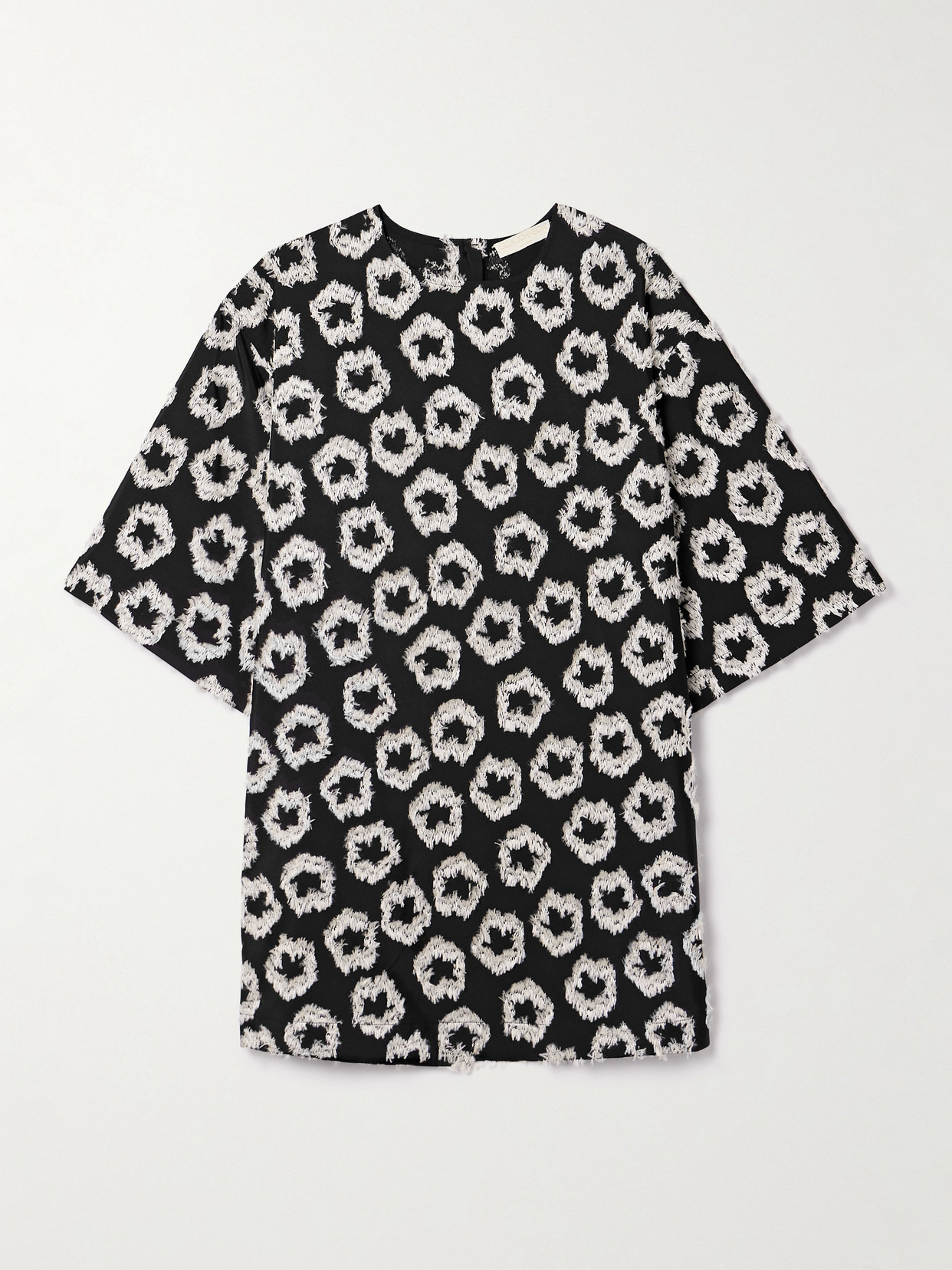 Ulla Johnson's 'Remy' tunic is made from fil coupe faille featuring an abstract dot motif with a particularly unique texture. Blended with 62% recycled materials and a touch of cotton, it has a loose, boxy fit with wide sleeves and hidden pockets.