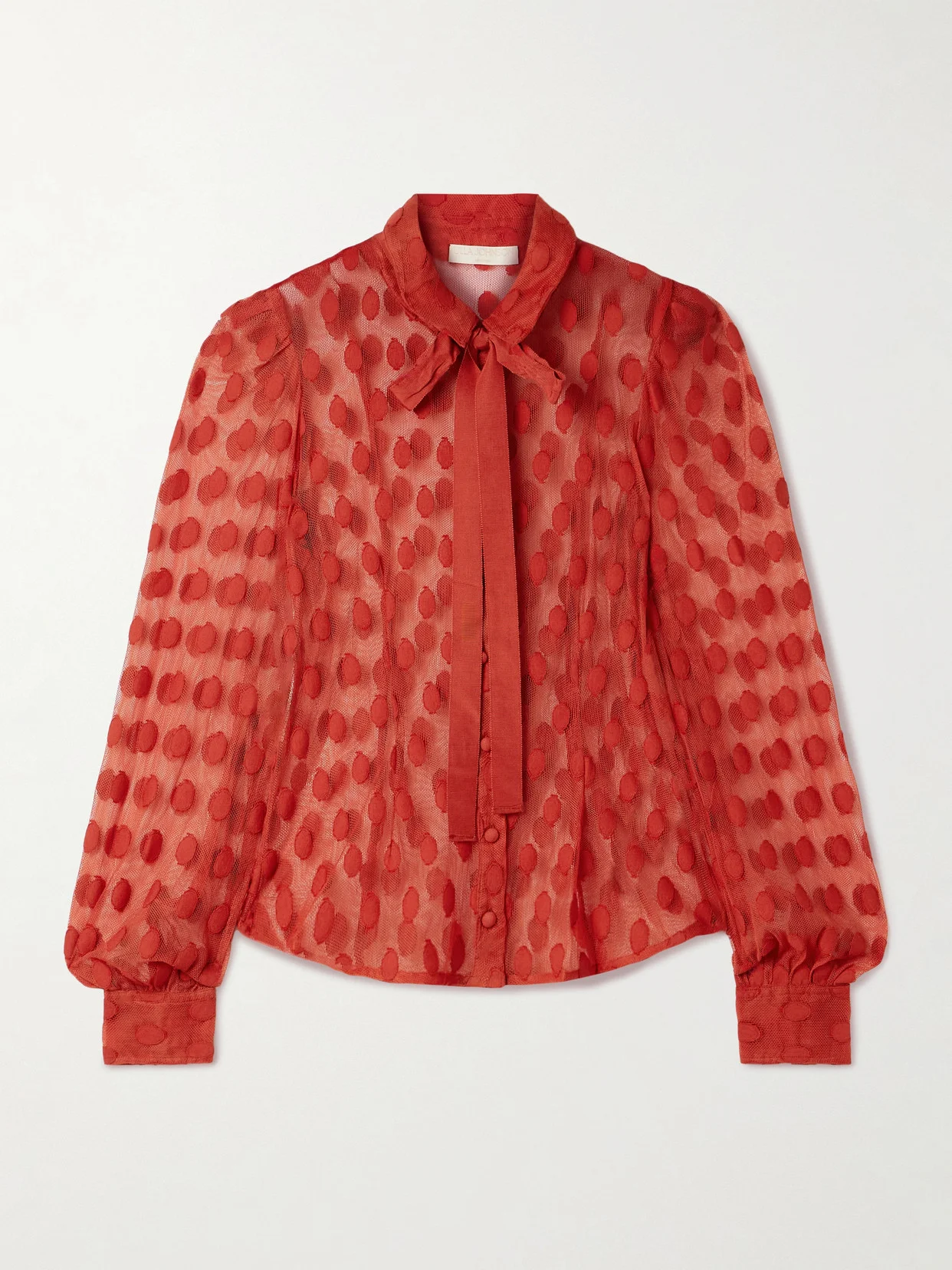 Soraya Tie-neck Fil Coupé Mesh Blouse