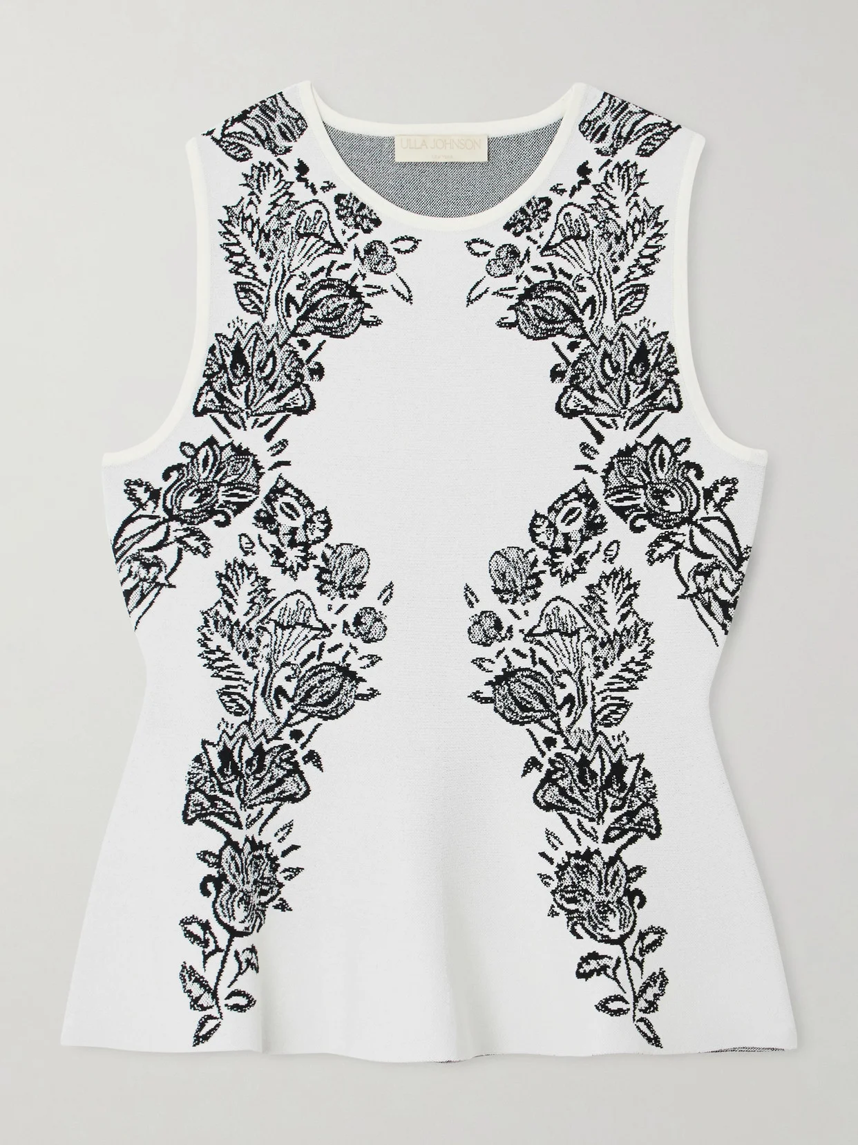 Ulla Johnson's 'Vanna' tank is jacquard-knitted with trailing florals that accentuate your frame. In a monochrome palette, it fits slim through the bodice and flares out to a structured peplum hem. Wear yours with the coordinating 'Valencia' skirt in our edit.