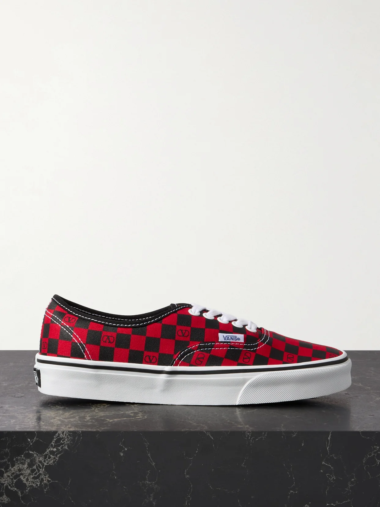 Valentino Garavani and VANS join forces to create these checkerboard sneakers. Made from canvas, they're stamped with the VLogo and have classic appliqued tabs. The linear rubber soles are highlighted with a striking stripe.