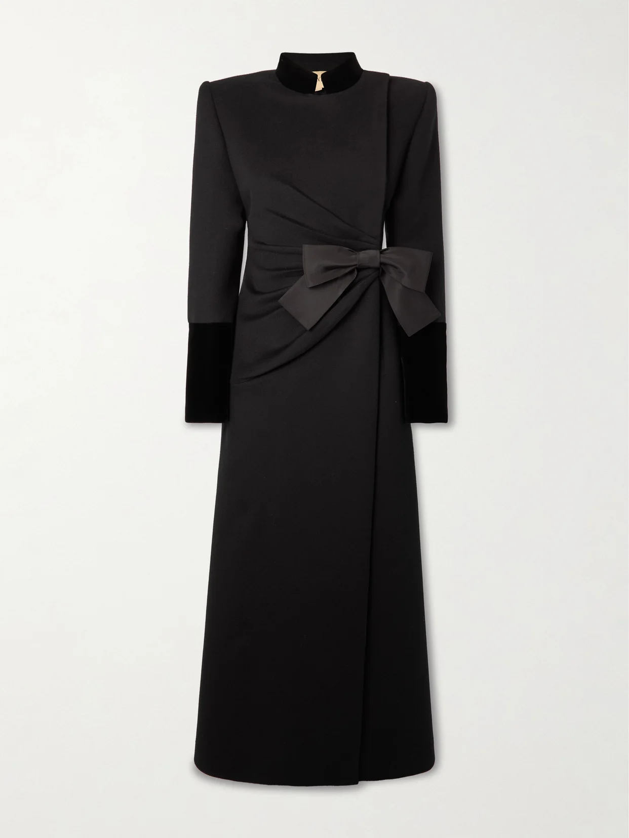 Bow-detailed Velvet-trimmed Wool And Cashmere-blend Coat