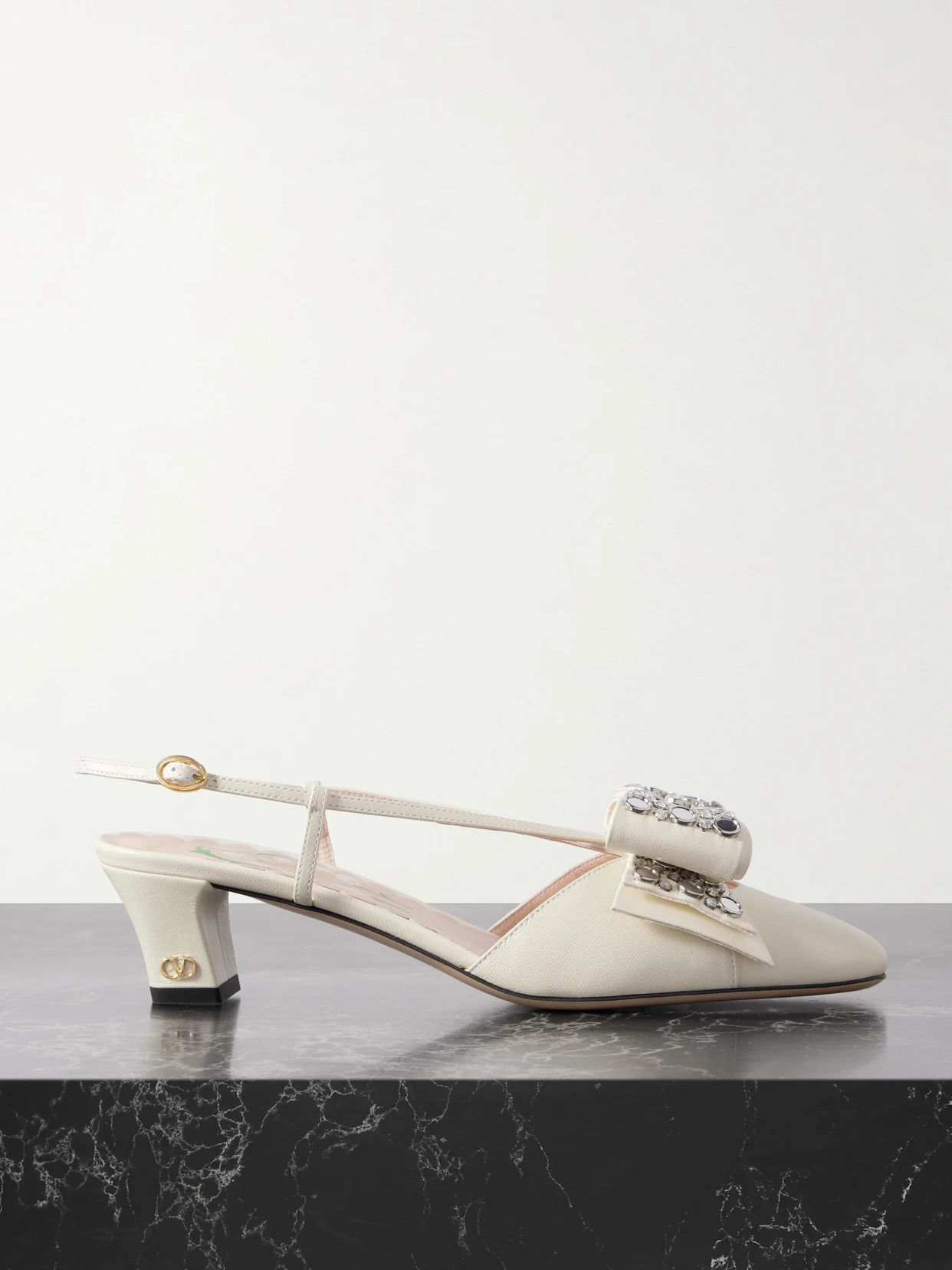 Bowow Embellished Leather Slingback Pumps