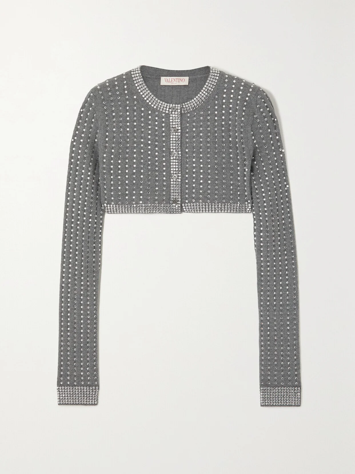 There's a radiance to Valentino Garavani's cardigan, courtesy of the light-reflecting crystals. From the Pre-Fall '23 collection, it's been knitted in Italy from insulating wool and has a defined, cropped hem. Take styling cues from the Maison and team yours with shimmering accessories.