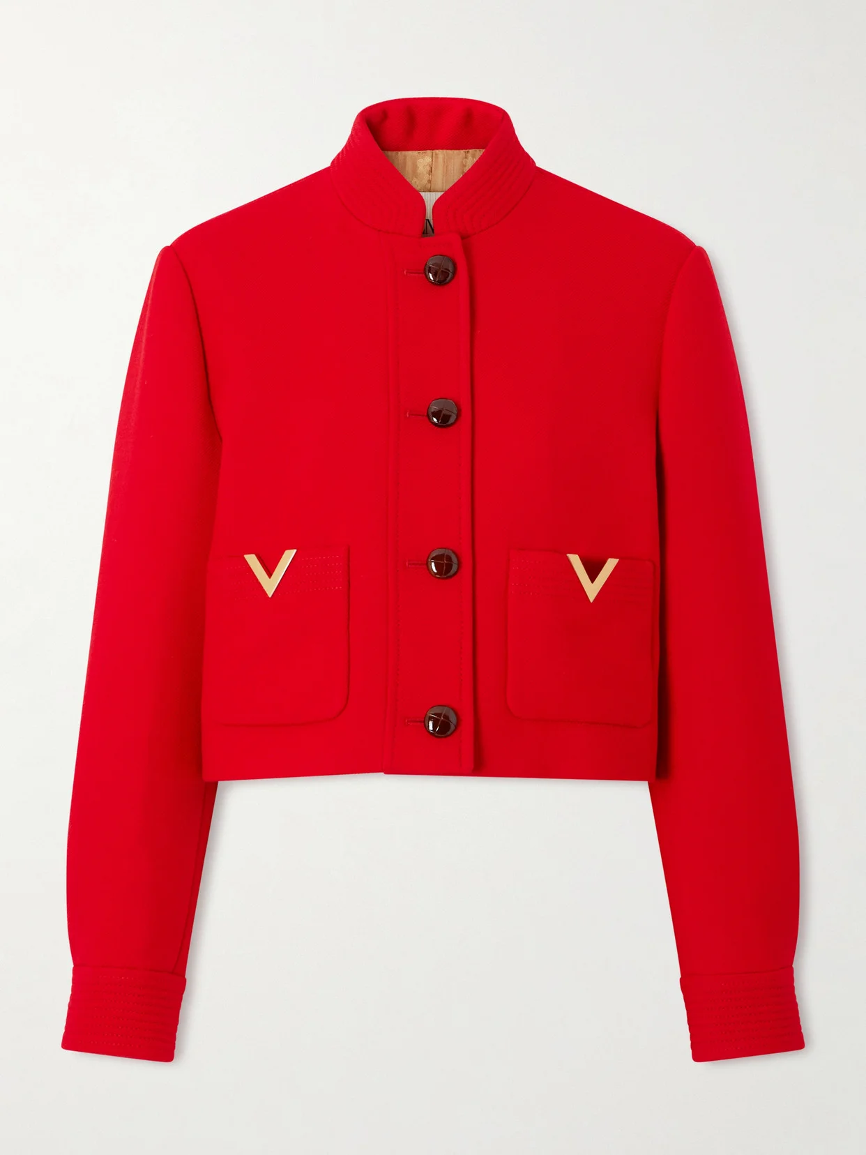 Valentino Garavani's polished jacket is embellished with gold 'Vlogo' plaques at the pockets. It's made from wool and silk-blend drill for a close fit and has embroidered ribbed detailing at the collar and cuffs.