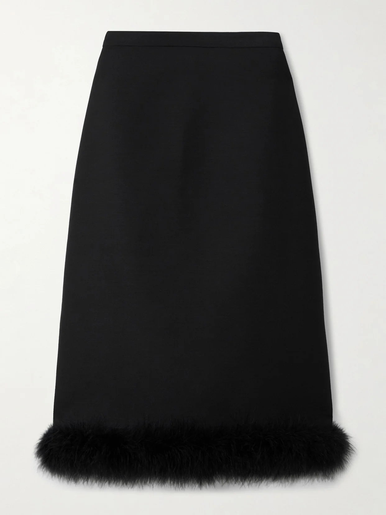 Feather-trimmed Wool And Silk-blend Crepe Skirt