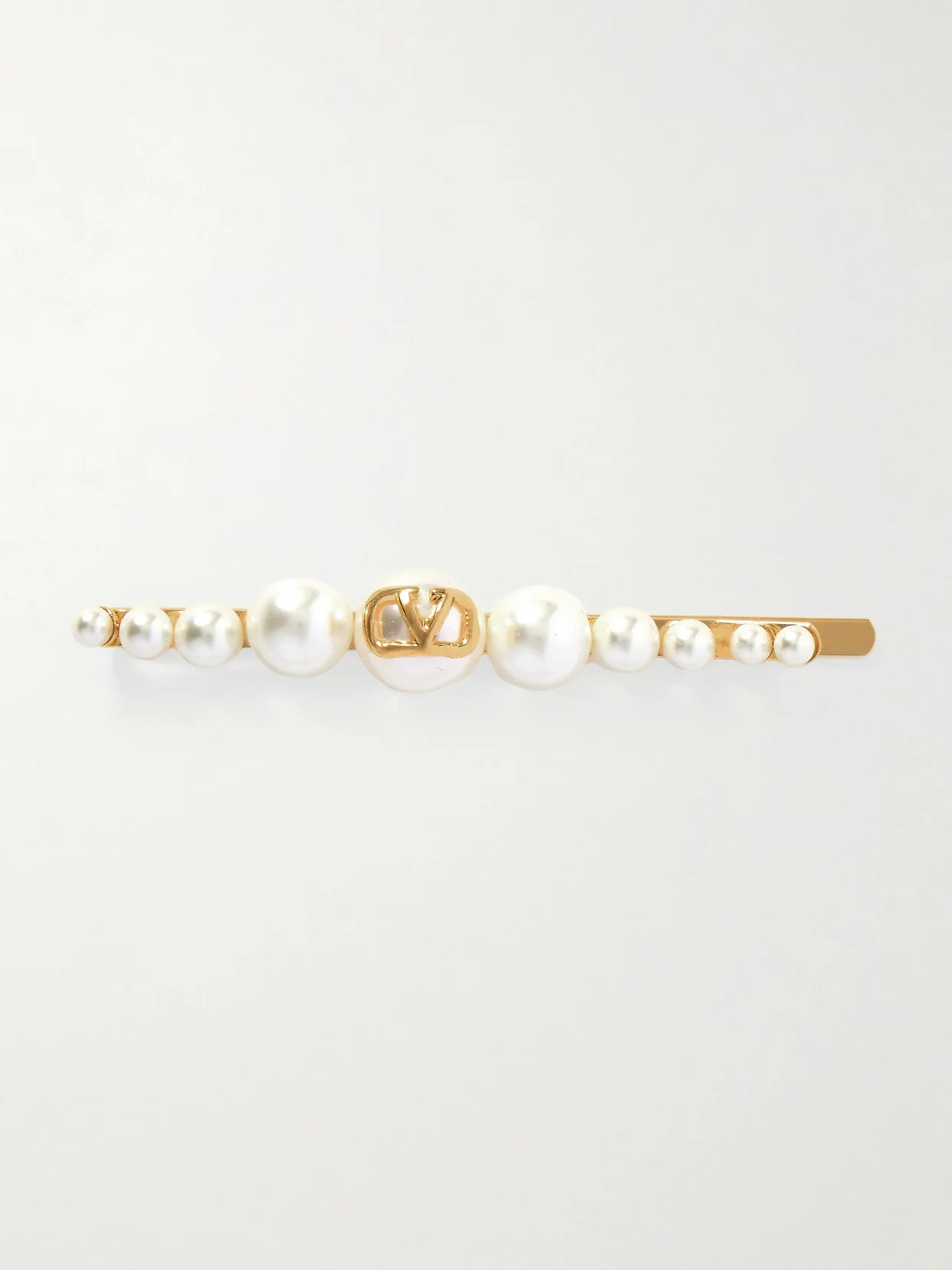 Valentino Garavani's hair slide will add finesse to any look. Made from gold-tone metal, it's set with lustrous faux pearls in varying sizes and topped with the signature 'VLOGO'.