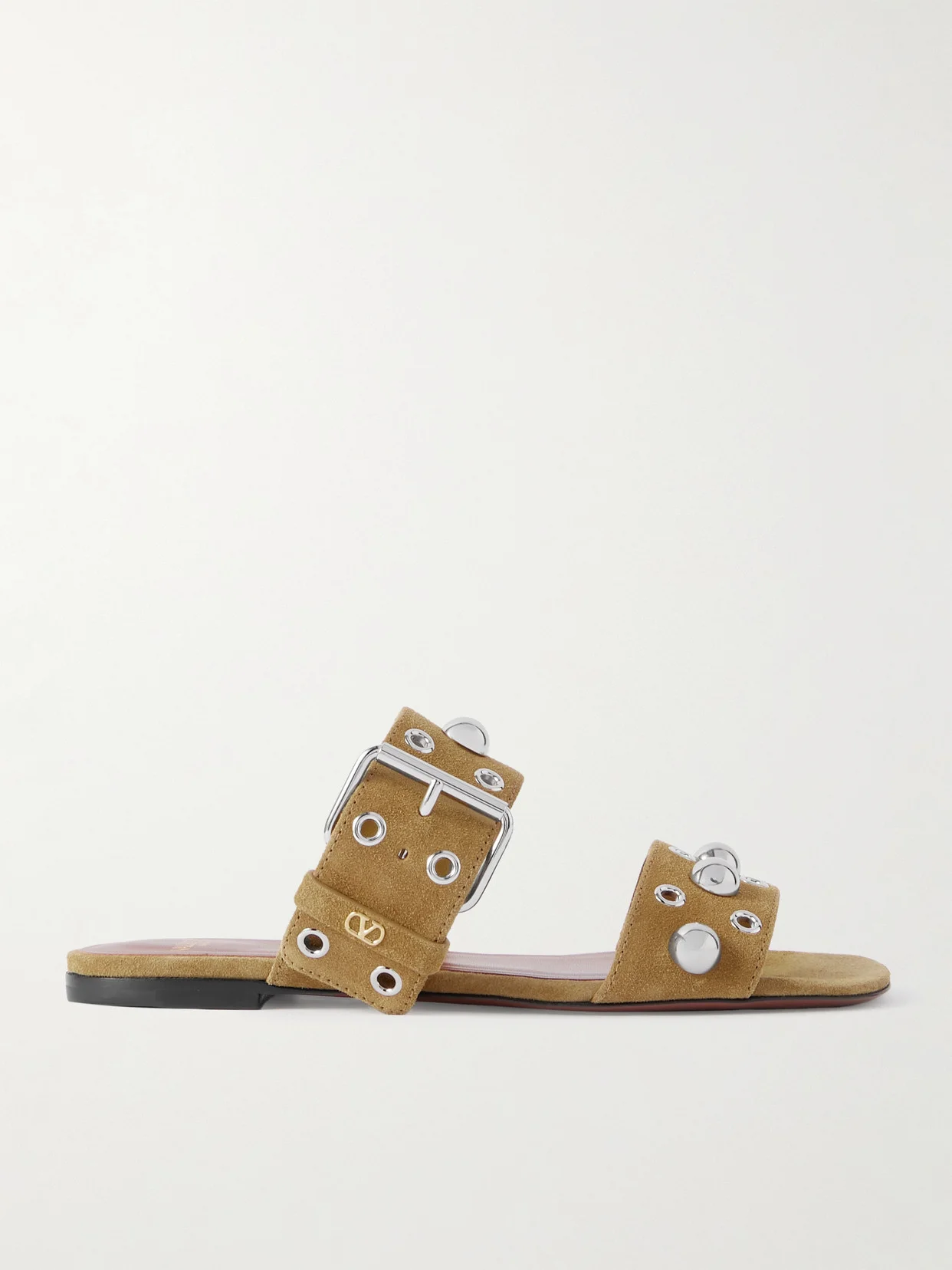 Just like the label's matching bags, Valentino Garavani's 'Nellcote' slides feature silver-tone eyelets and studs that give them a Western-inspired feel. They have squared off toes and an adjustable buckle, so you can customize the fit if need be.