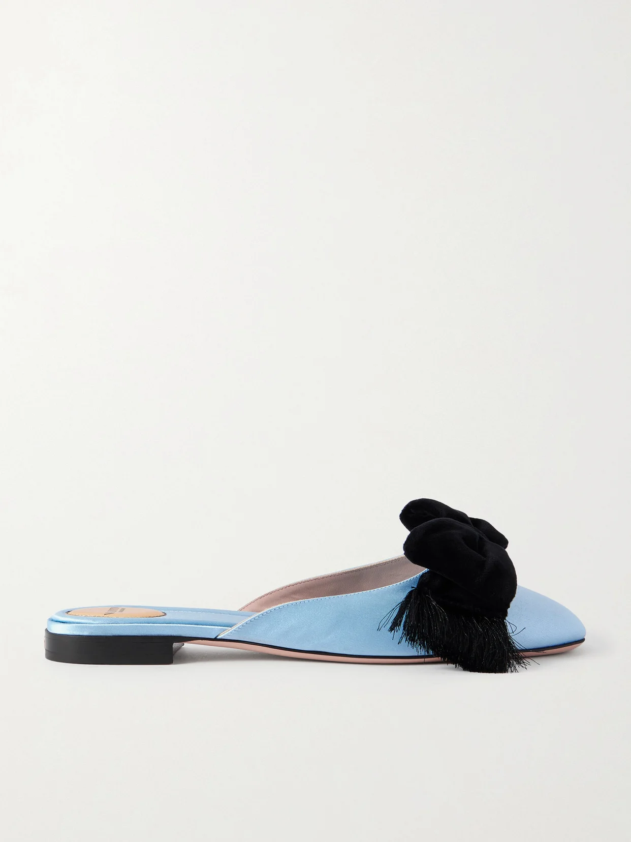 Reinette Bow-embellished Velvet-trimmed Satin Mules