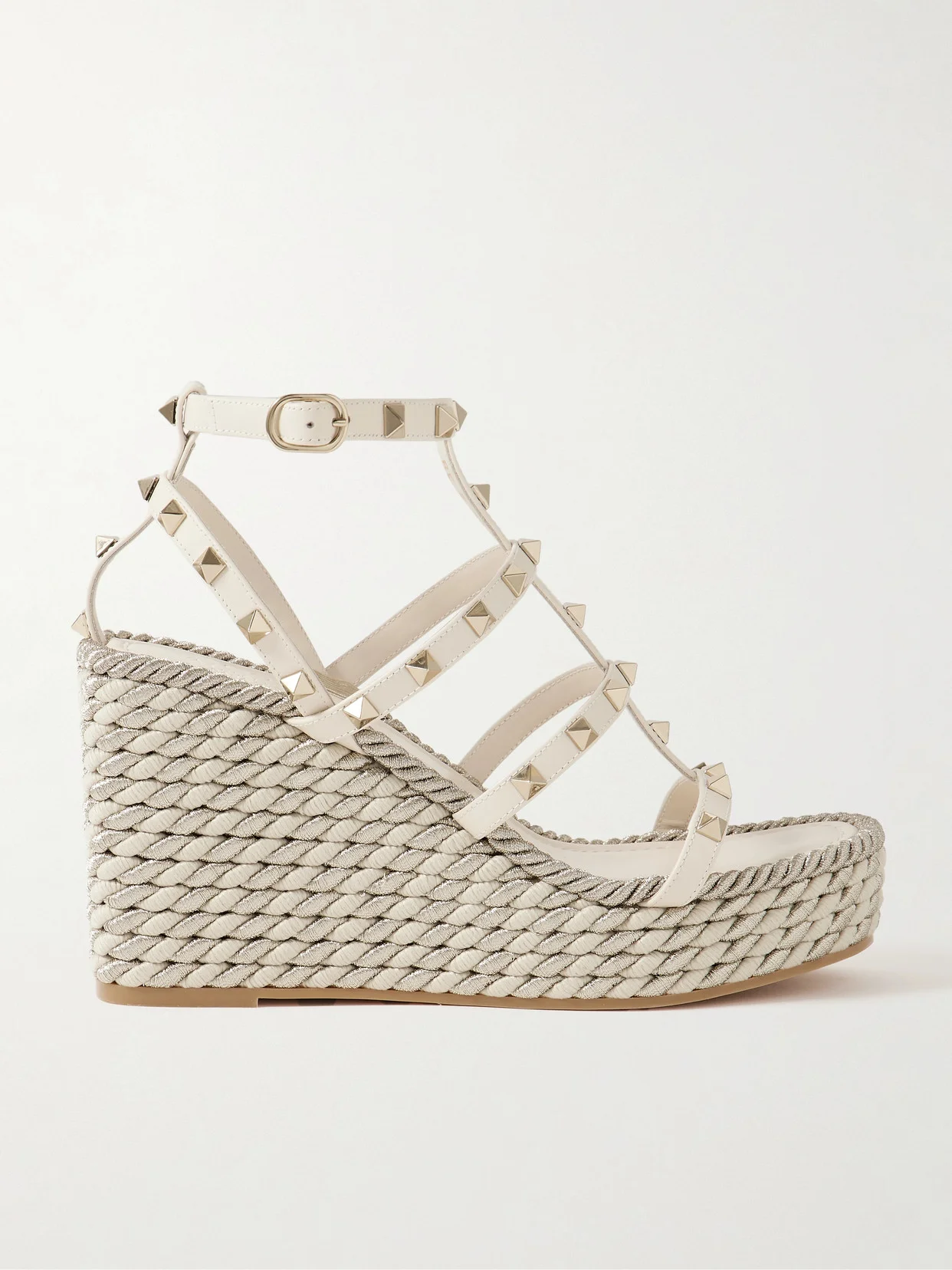 Rockstud Torchon 105 Leather Espadrille Wedge Sandals