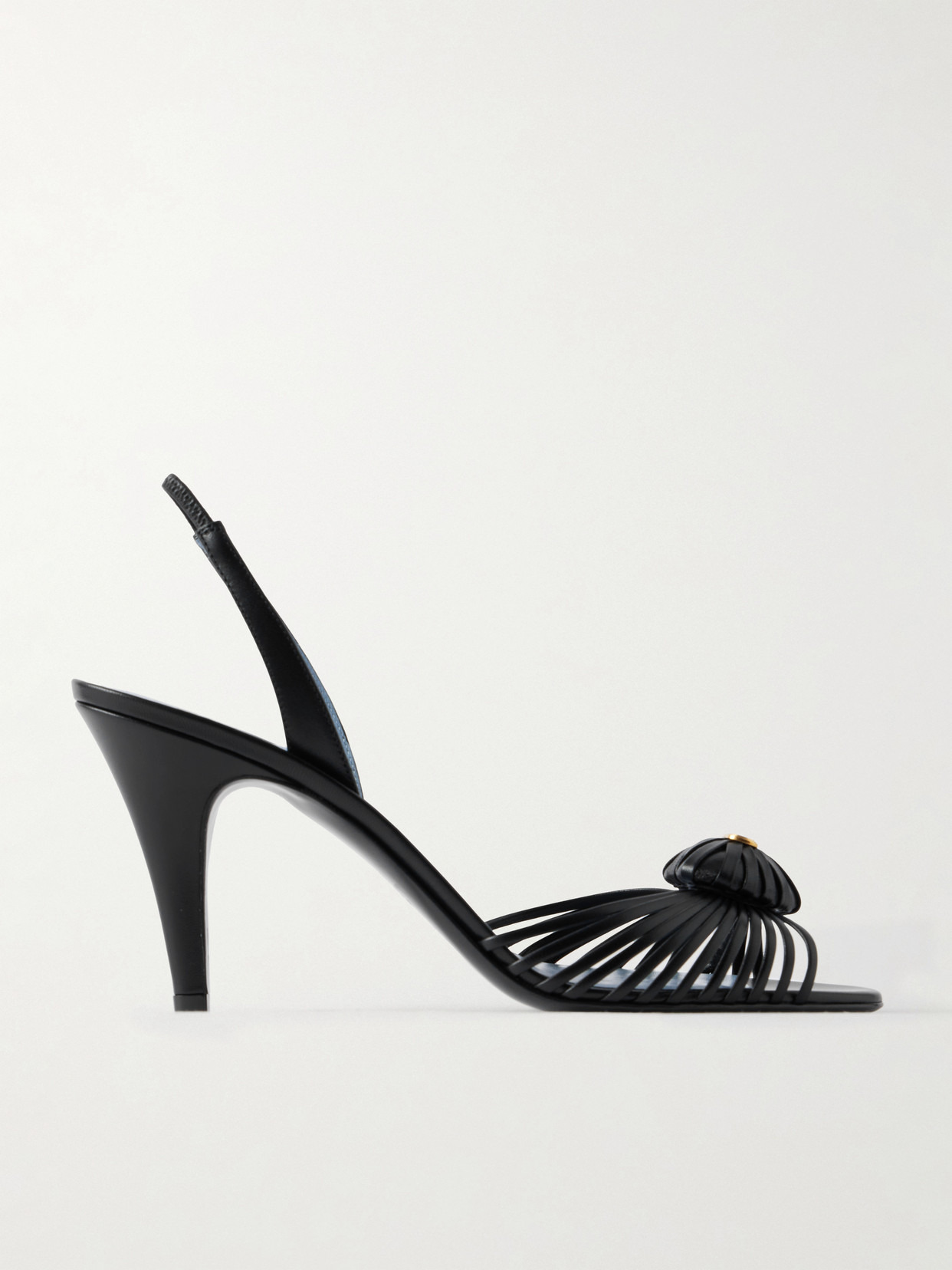 Valentino Garavani's 'Royal' sandals have slim straps that are gathered at the center and topped with a 'VLogo'-embellished 3D heart. They have sleek 85mm heels and slingback straps to keep them in place.