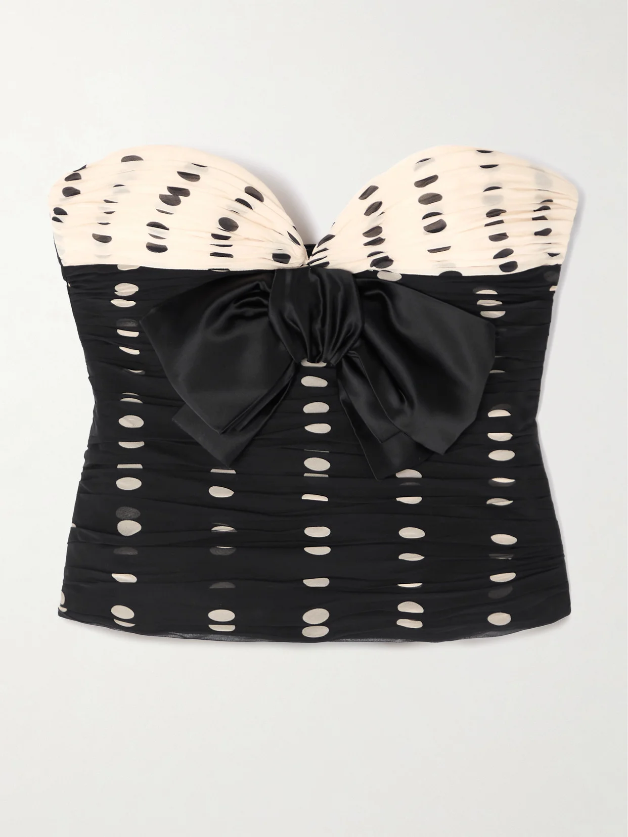 Satin Bow-detailed Ruched Silk-chiffon Strapless Top