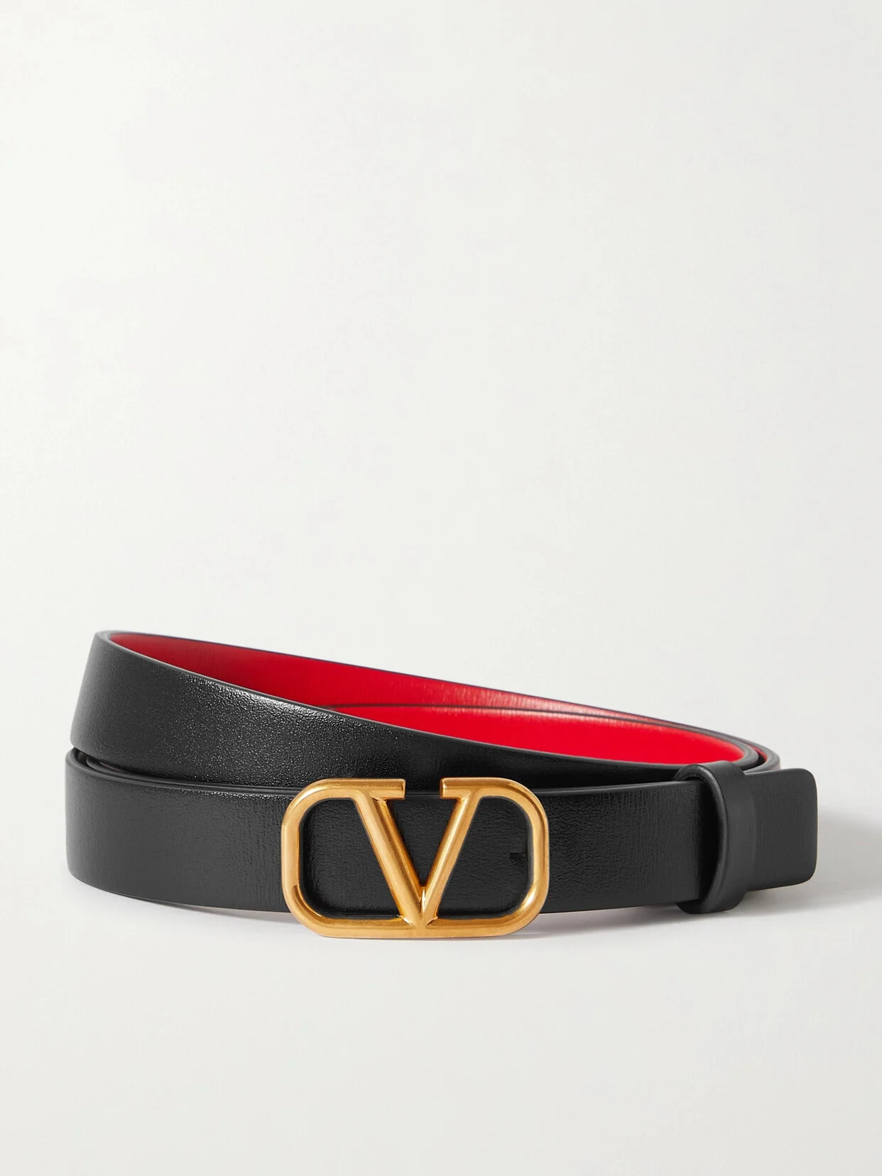 The definition of versatile, Valentino Garavani's belt can be worn on either the black or red side. It's been made in Italy from smooth, structured leather and has a slim profile. The signature 'VLOGO' hardware is slightly burnished to temper the gleam.