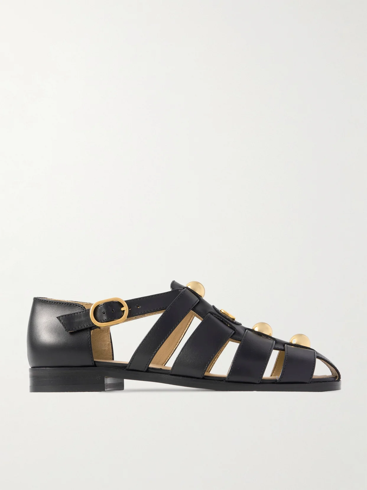 Valentino Garavani's sandals are modeled after traditional fisherman styles, with the gold-tone studs and 'VLogo' ensuring they look more elevated. They're made from leather with ventilating cutouts and have adjustable buckles at the ankle. Wear them solo or with socks.