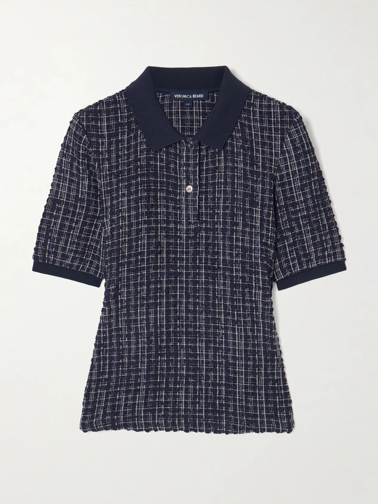 Veronica Beard's 'Benedetta' polo shirt is made from tactile seersucker. It's patterned with classic checks and designed for a close fit. Leave the first button undone for a more relaxed look.