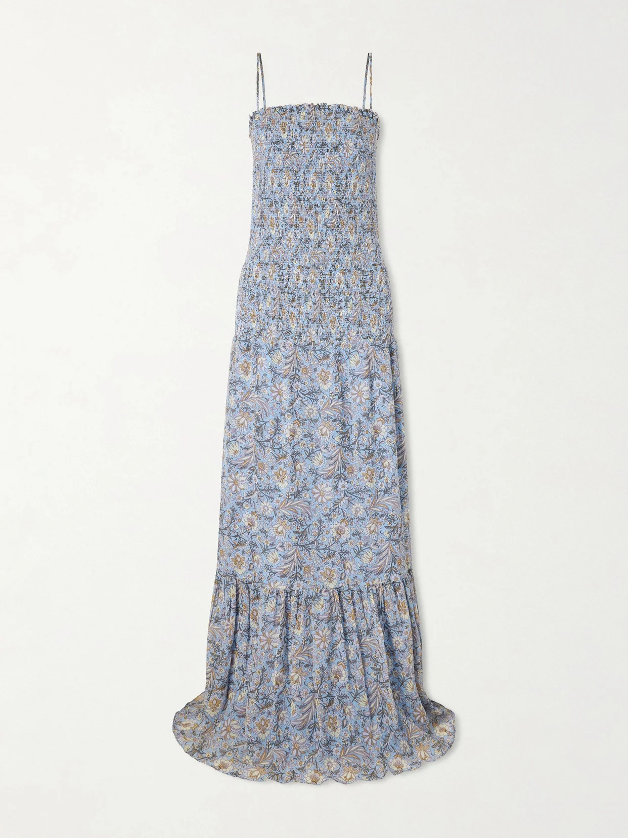 Clem Shirred Floral-print Cotton And Silk-blend Midi Dress