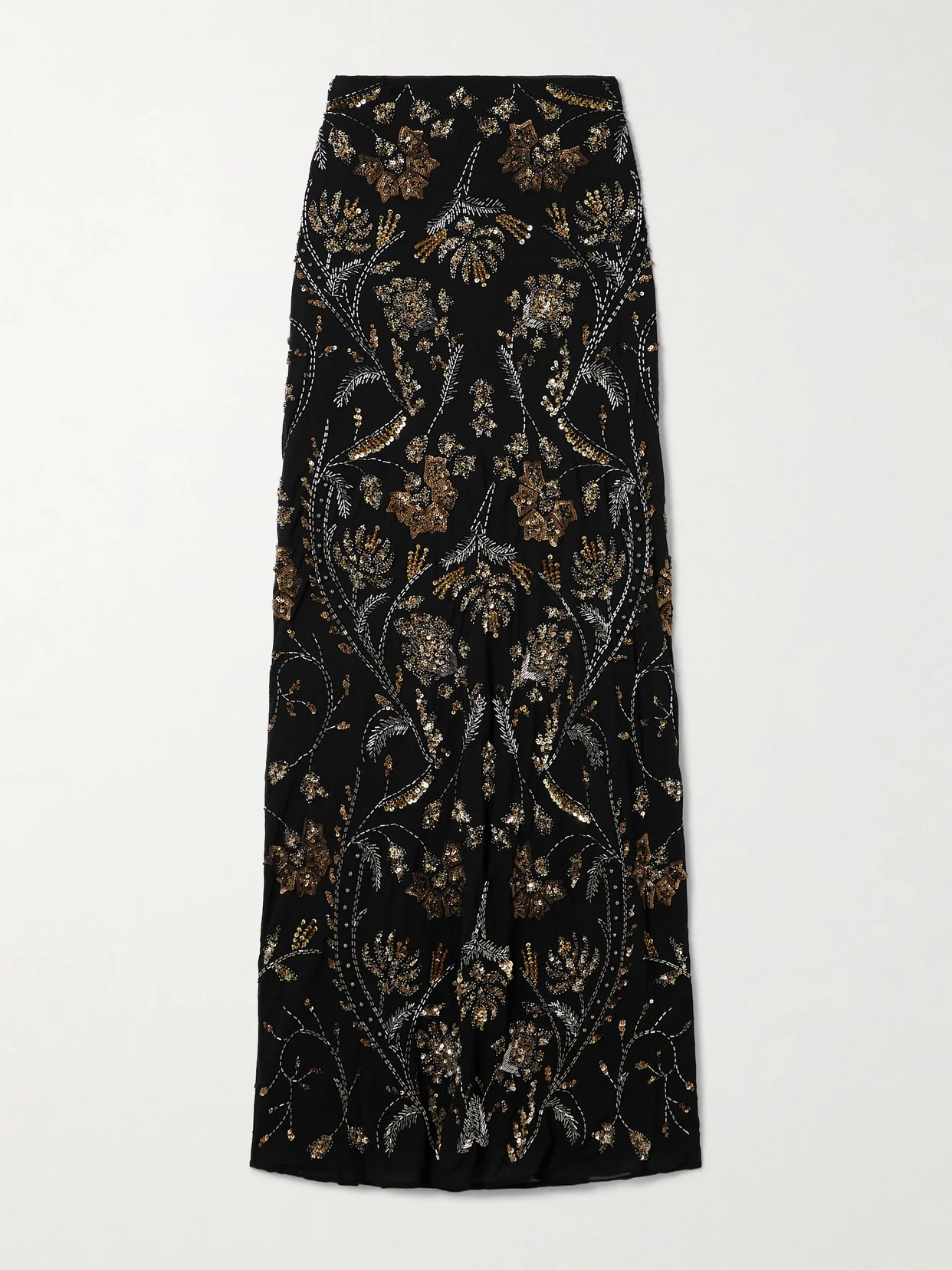 Veronica Beard's 'Medina' skirt is embellished with beads and sequins carefully arranged to depict flowers. Cut from black crepe, it sits high on the waist and falls to a floor-grazing hem.
