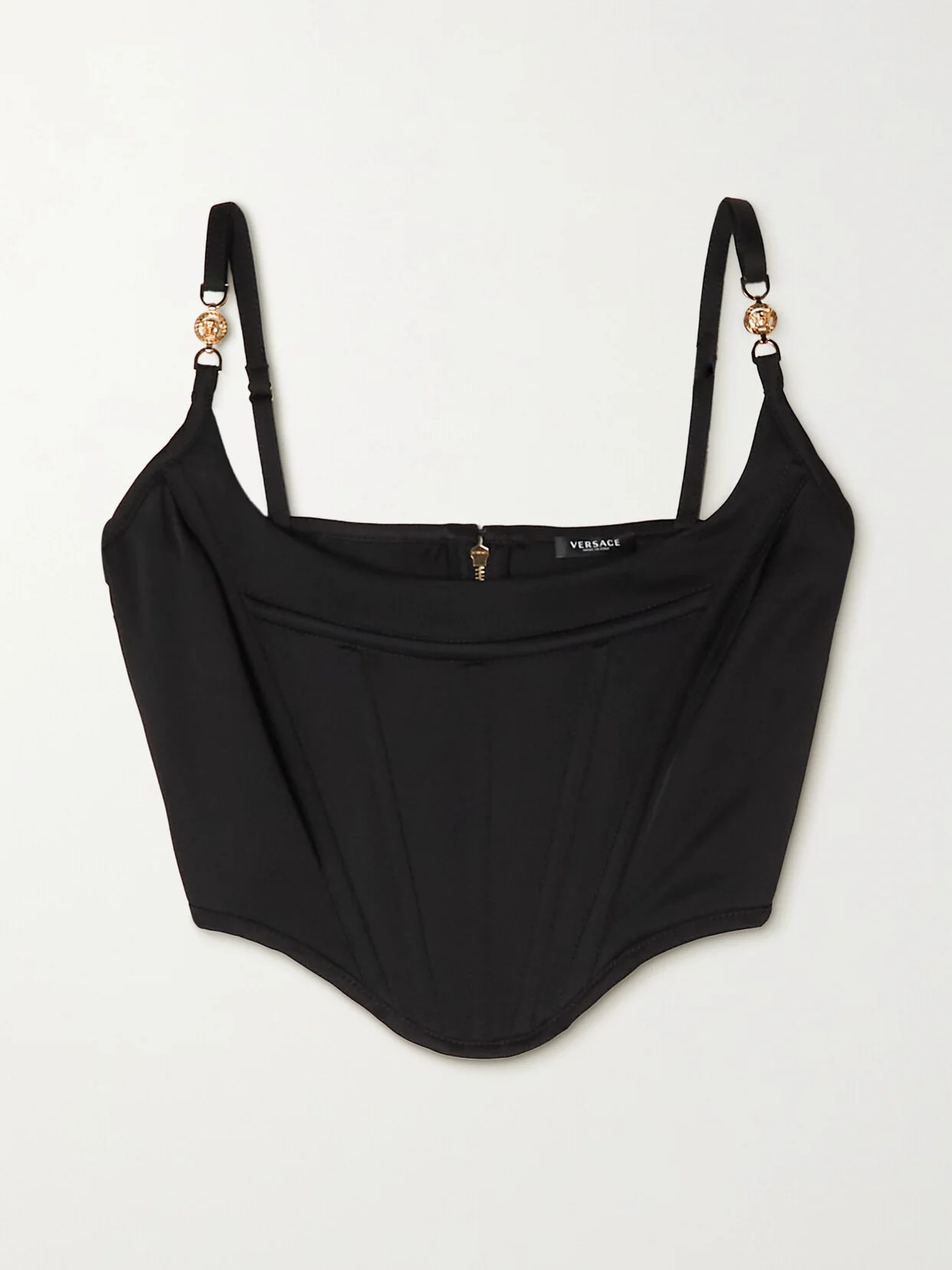 Versace's bustier top is crafted from satin and inspired by Donatella's love of corsetry, which was echoed throughout her Fall '22 runway. It's designed with internal boning and embellished with the iconic 'Medusa' motif on the adjustable straps. It looks just as great with the band's jeans as it does with midi skirts.