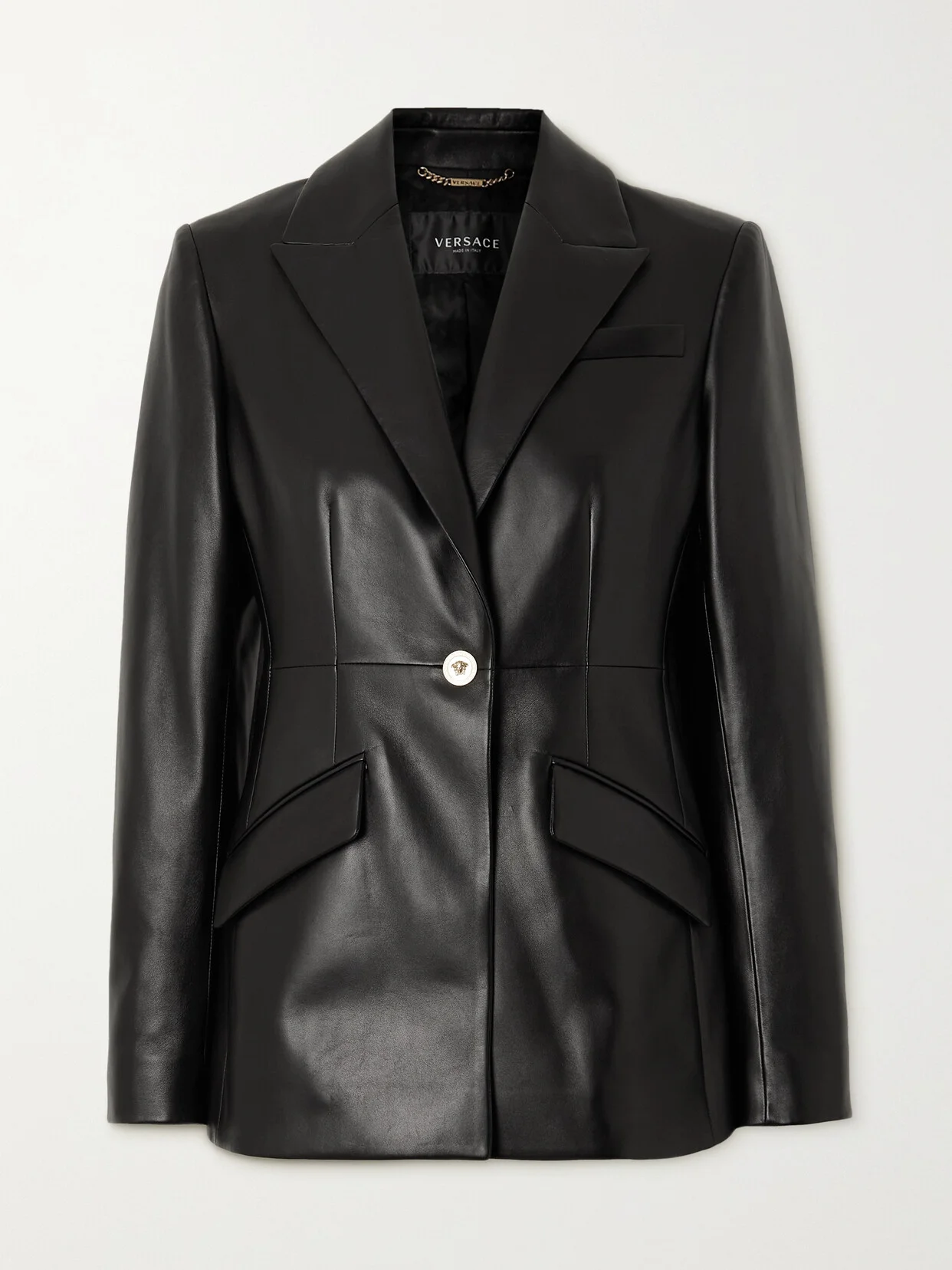 Versace's blazer will transcend passing trends. Made from supple black leather with a silky lining, it has padded shoulders and one single 'Medusa' button in homage to Gianni's beloved motif - the pool at his Miami mansion even featured a mosaic of the Greek mythological goddess.