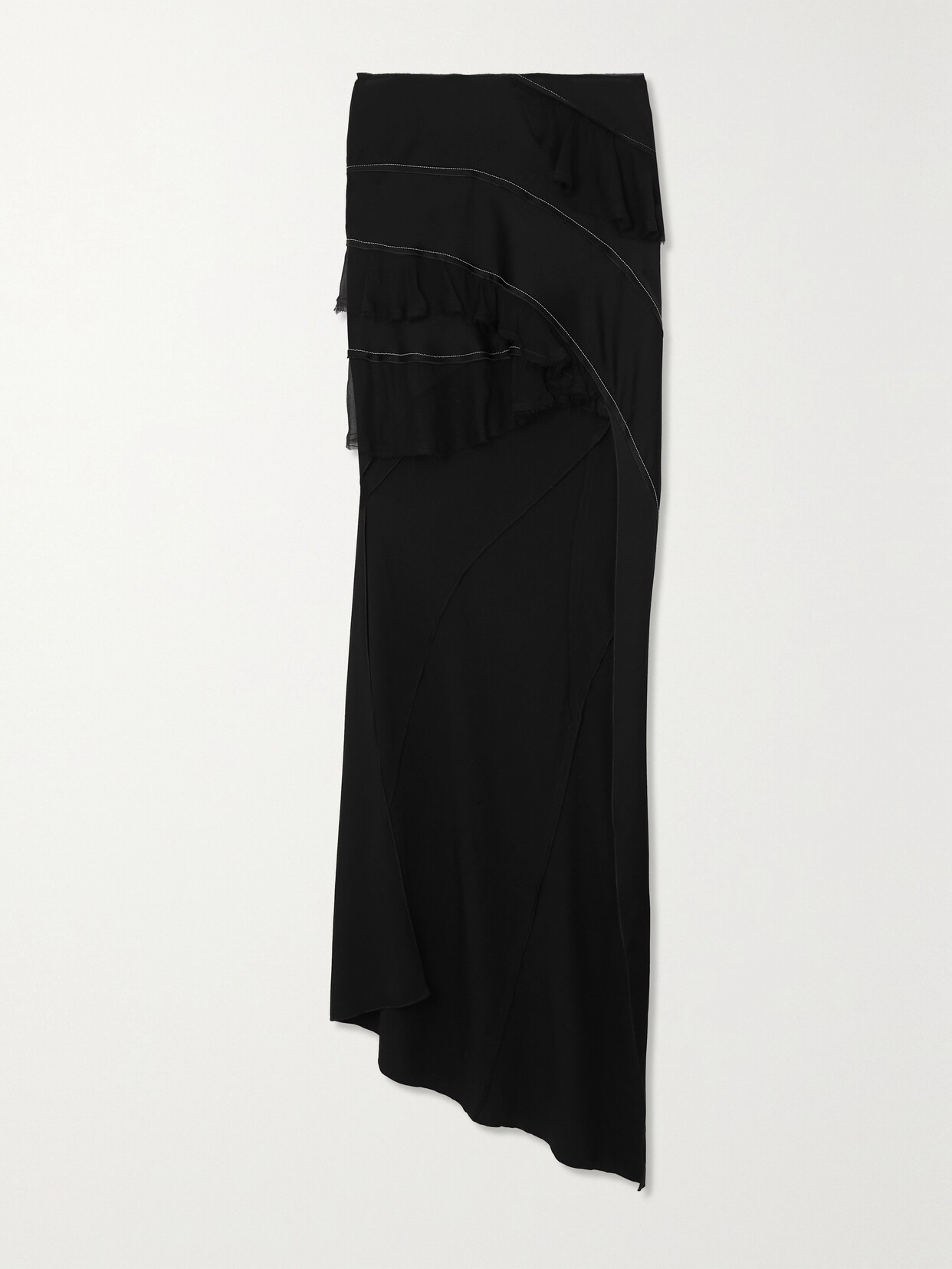 Asymmetric Ruffled Chiffon-trimmed Crepe De Chine Maxi Skirt