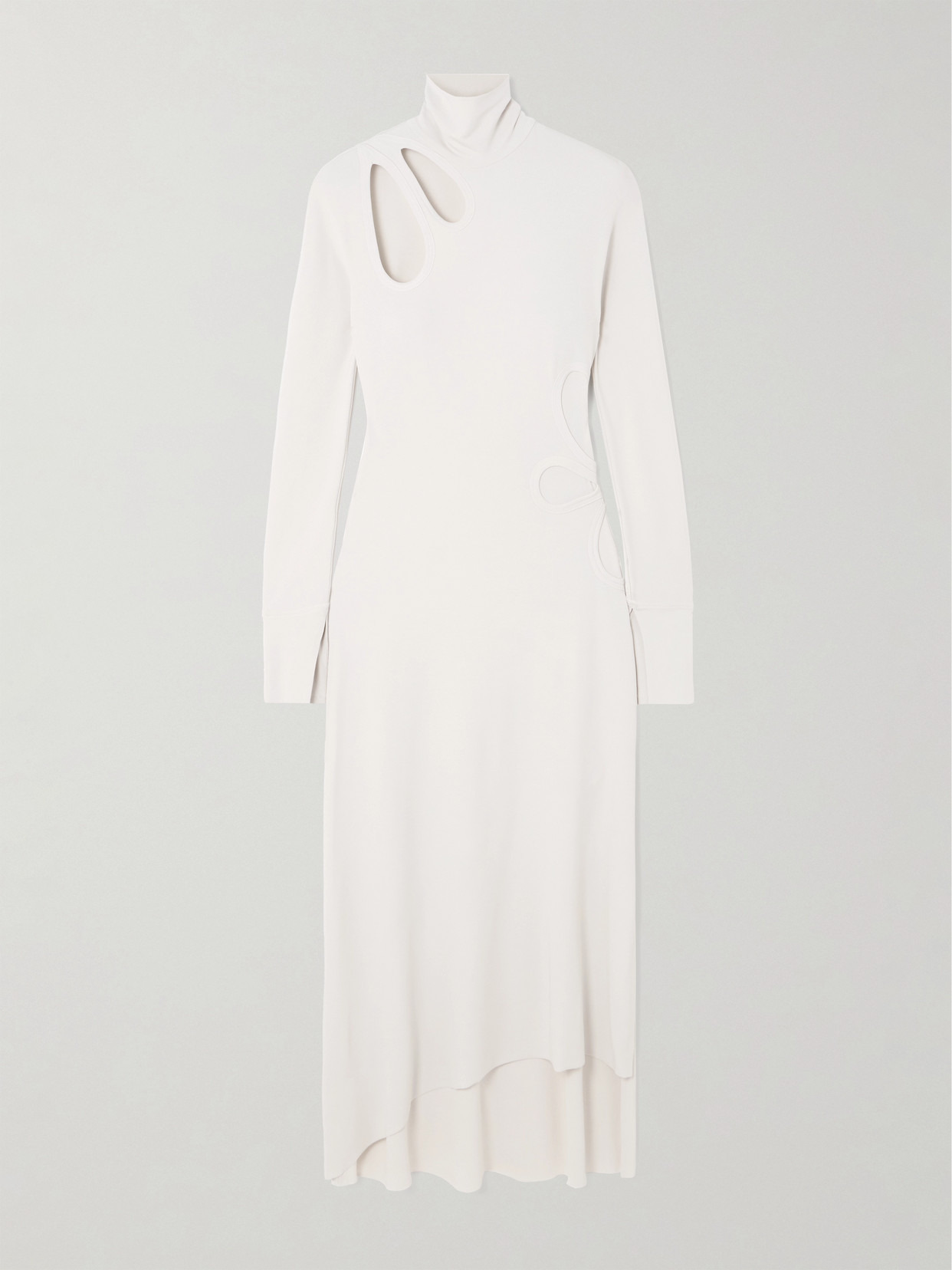 Cutout Asymmetric Stretch-jersey Turtleneck Midi Dress