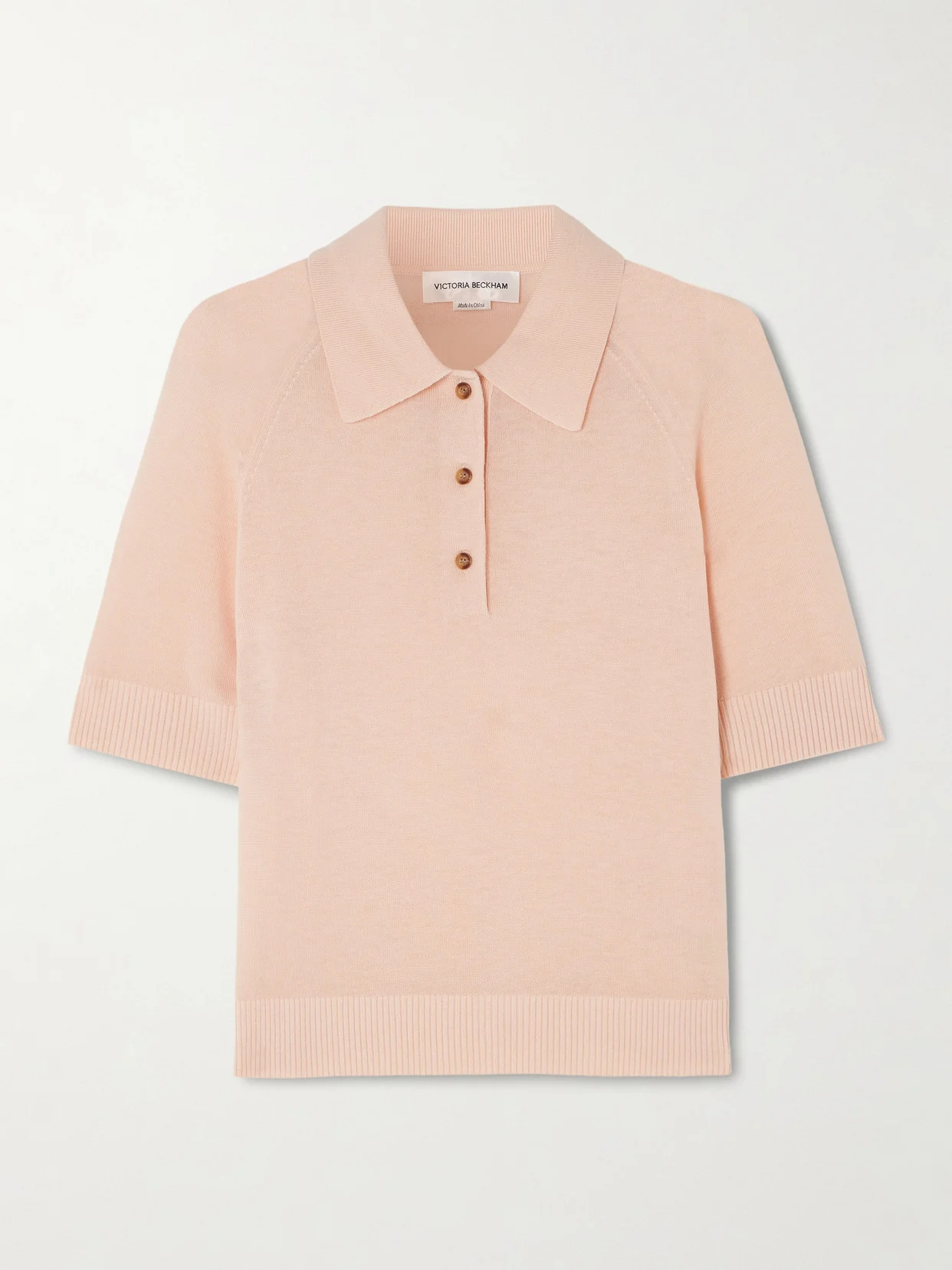 Victoria Beckham's polo shirt is knitted in a slim, gently cropped profile. It's ribbed at the cuffs and hem and finished with a logo tab on the back neck. Wear yours with everything from jeans to tailored or leather pants.