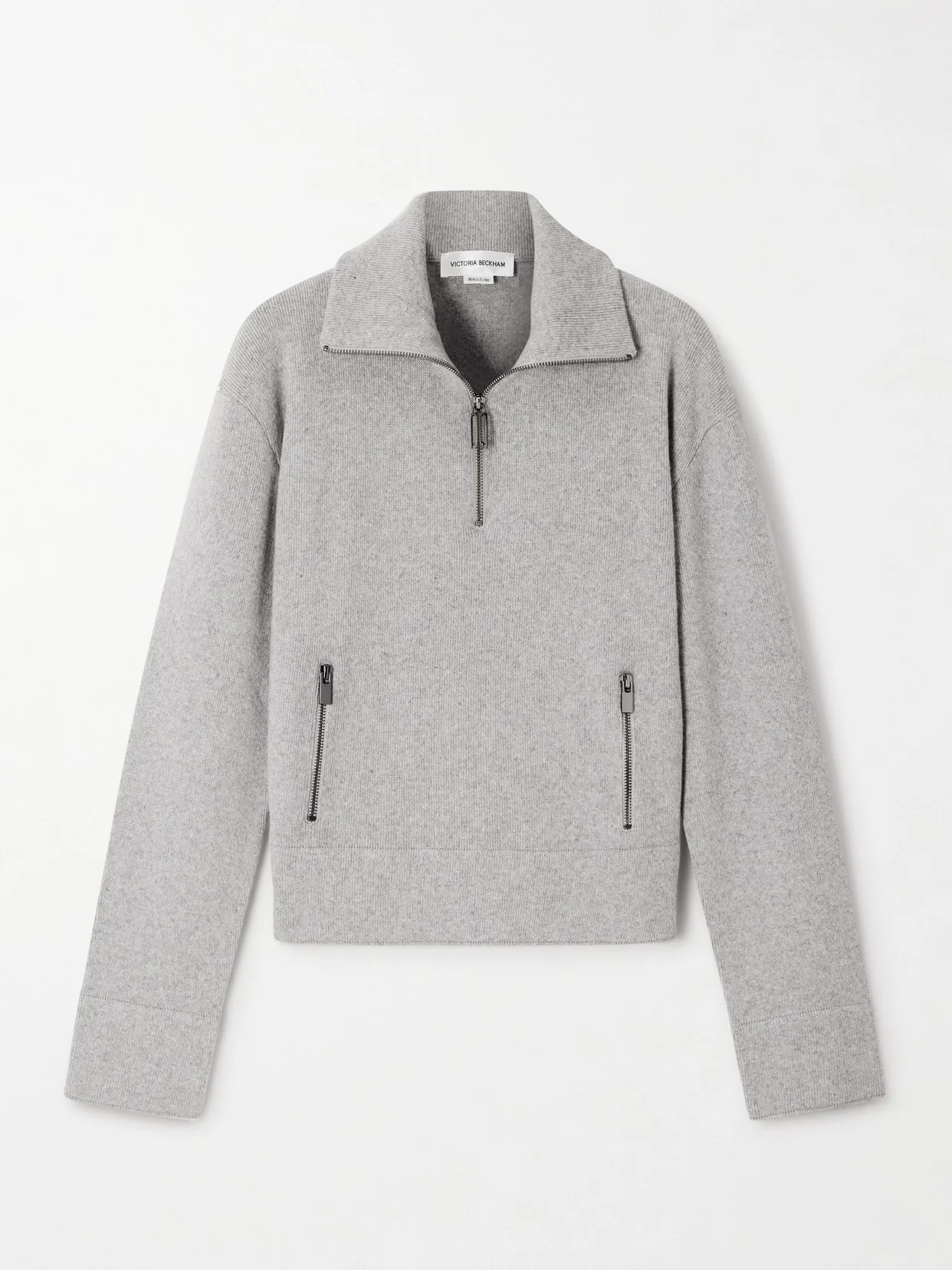 Victoria Beckham's 'Milano' sweater is an elevated take on sportswear. It's made from soft wool and cashmere-blend and has a half-zip neckline - the pull-tab is shaped like the brand's logo.