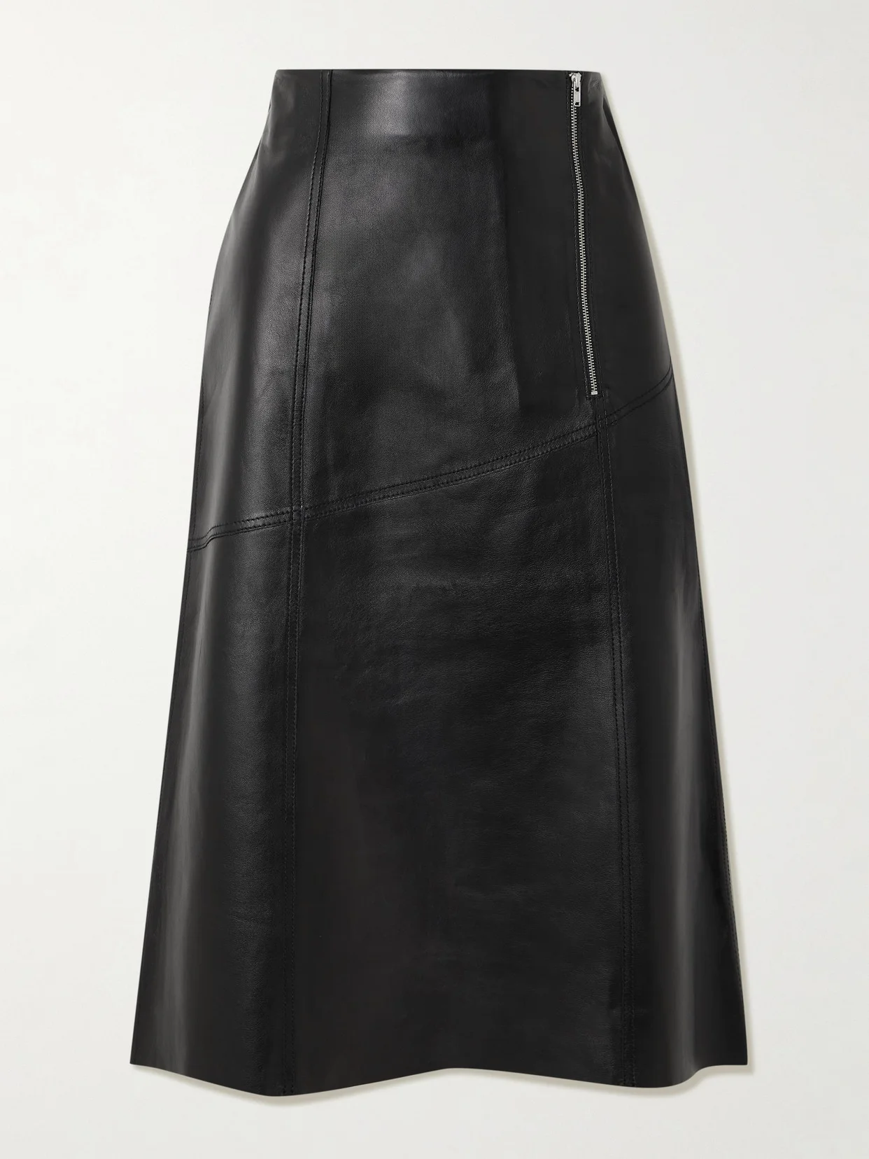Victoria Beckham's skirt embodies modern minimalism. It's cut from supple leather in a flared A-line shape and paneled for extra definition.