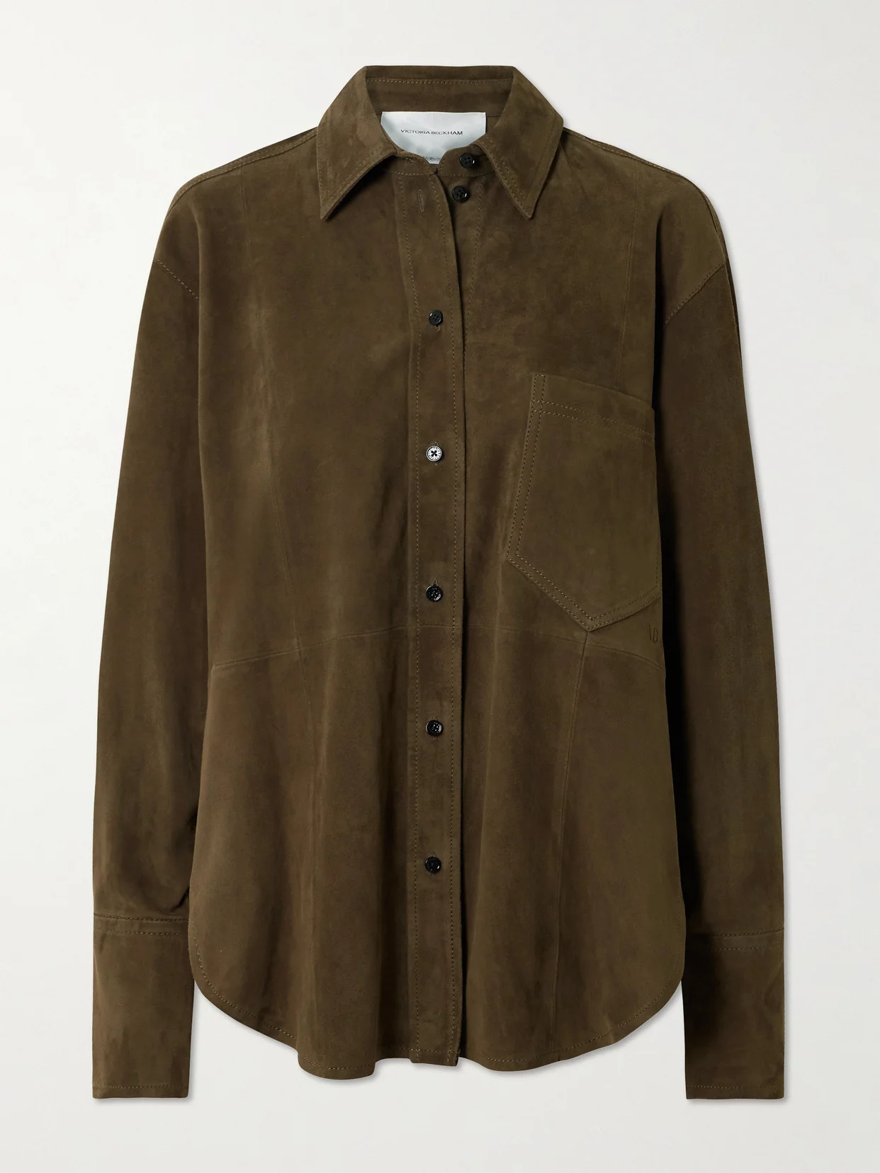EXCLUSIVE AT NET-A-PORTER. You'd be surprised how softly Victoria Beckham's shirt drapes - the suede is beautifully fine. It's tailored in a menswear-inspired fit, so it'll layer nicely as a jacket over a lace cami, too.