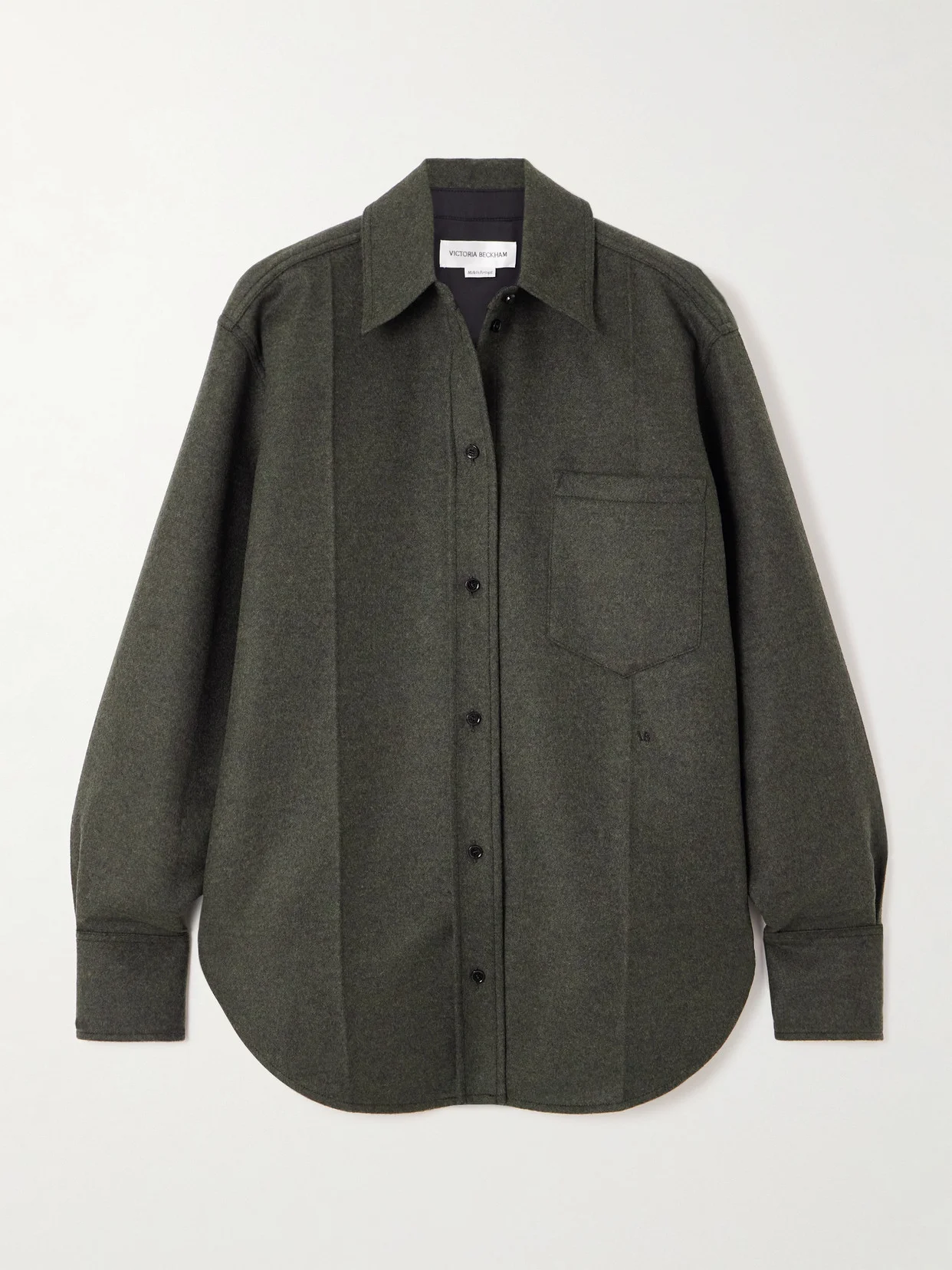 Victoria Beckham's shirt is made from warm wool and has a rounded hem and pressed creases at each side. The cuffs are pleated, creating volume through the sleeves.