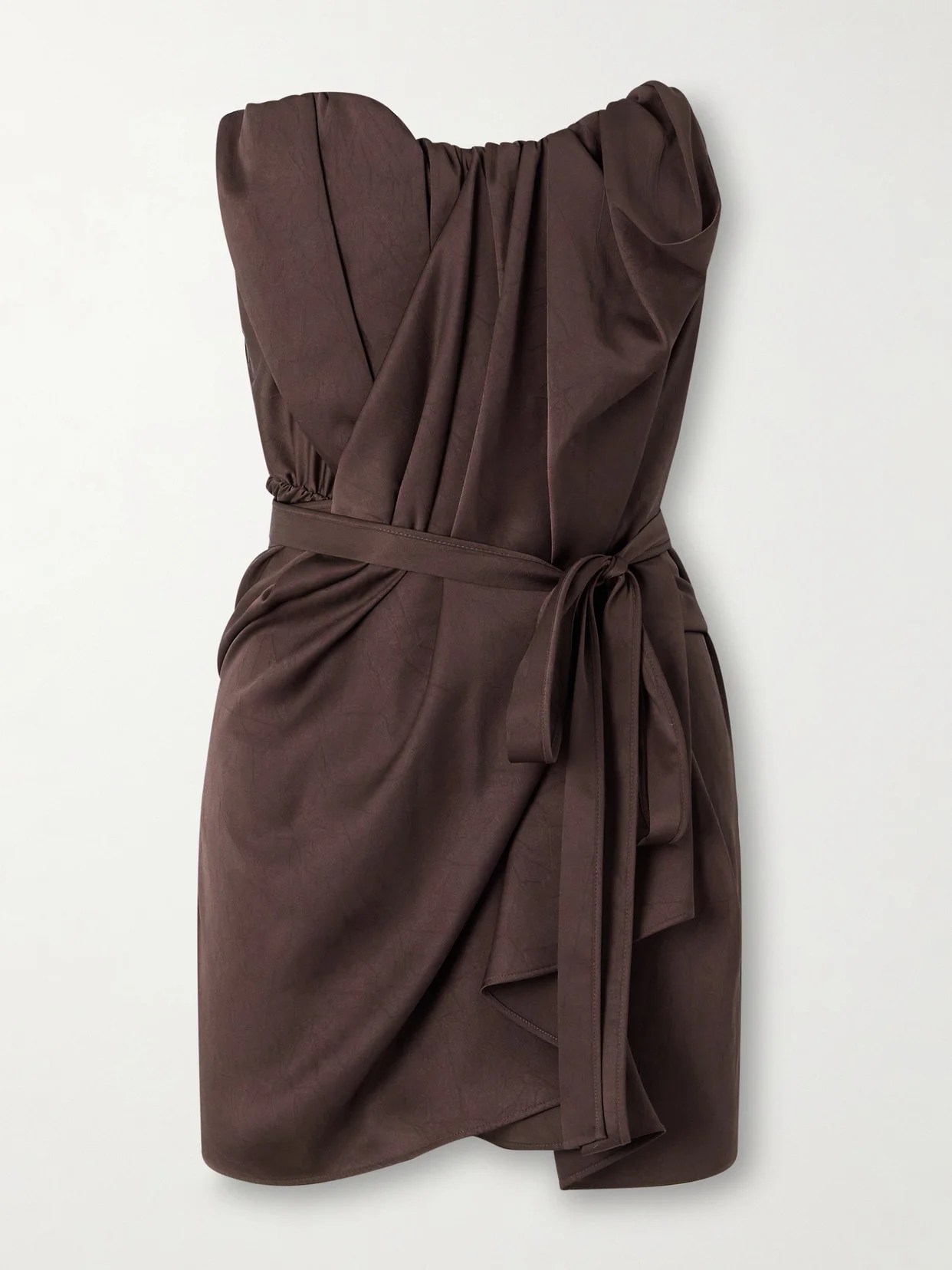 Susana Strapless Draped Crinkled-satin Mini Dress