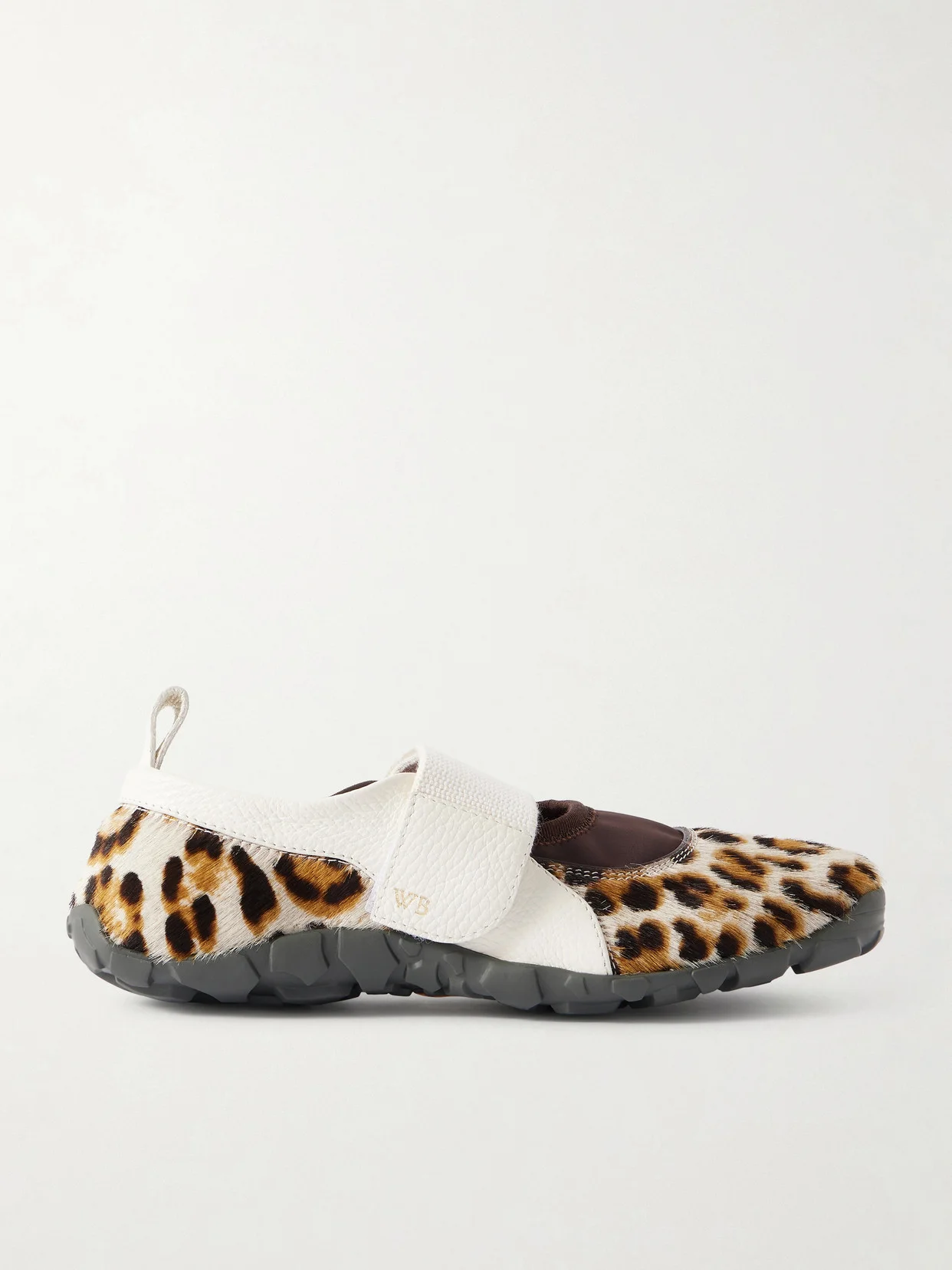 Wales Bonner's 'Jewel' sneakers offer a fresh take on Mary Jane flats. Designed to stand out, they're made from leopard-print calf hair with textured-leather trims and flexible rubber soles.