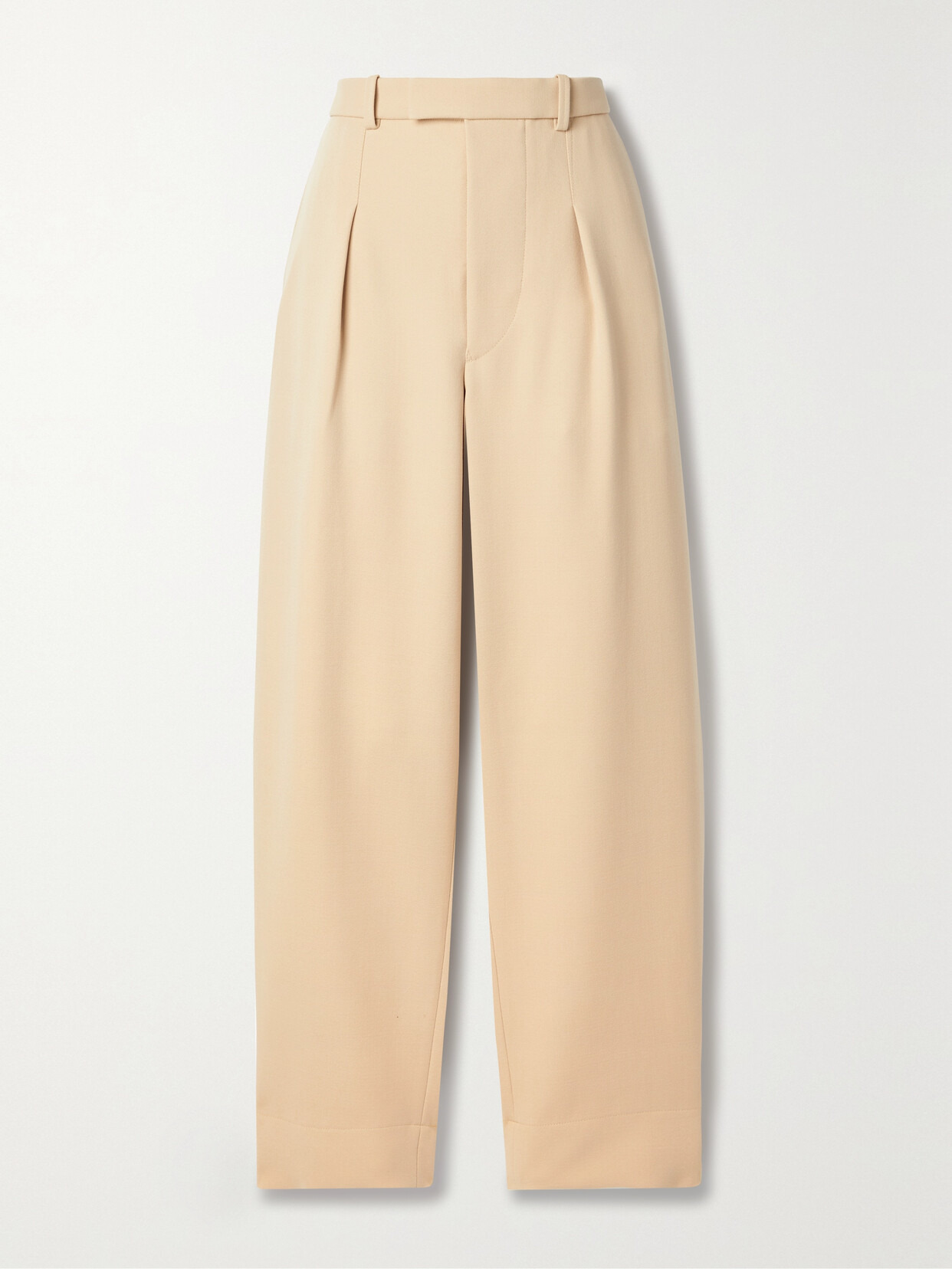 + Hailey Bieber Pleated Wool Wide-leg Pants
