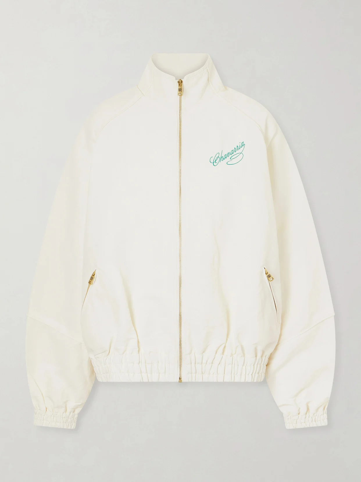 This jacket was styled on Willy Chavarria's Spring '26 runway, which celebrated America's diversity. It's made from shell in a classic track profile with a stand collar and elasticated edges. The designer's name is embroidered on the chest.