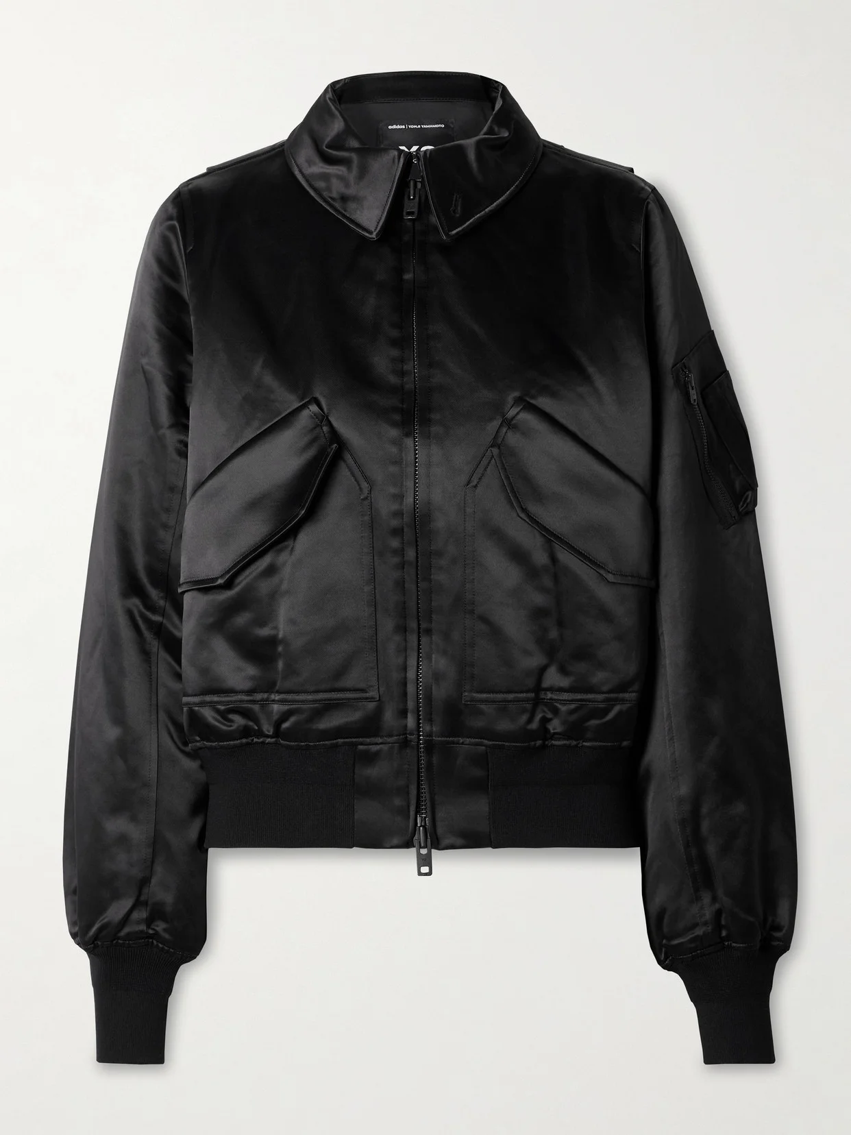 This bomber jacket fuses adidas Originals' heritage with Y-3's avant-garde approach to design. Made from lustrous satin, it's padded for insulation and has a prominent collar and pockets, including at one sleeve. The ribbed trims accentuate the relaxed fit.