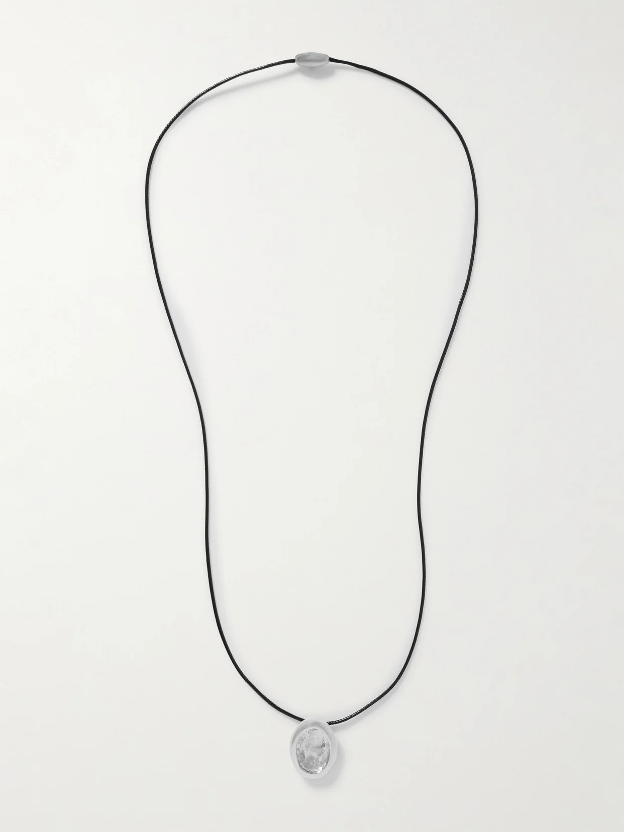 Inspired by Aesop's Fables, YSSO's necklace is designed to "honor the art of storytelling and its place in the modern experience." The cord is strung with a pendant cast from sterling silver and gently hammered for a light-catching finish. Responsible Craftsmanship. This product promotes artisanal skill and brands that invest in communities and adhere to fair-trade principles. Find out more about our NET SUSTAIN criteria here.