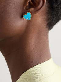 Yvonne Leon's heart-shaped earrings are inspired by the clean face of a signet ring. They're handmade from 9-karat gold and have turquoise inlays set with a tiny diamond. Wear yours as a set with the matching ring.