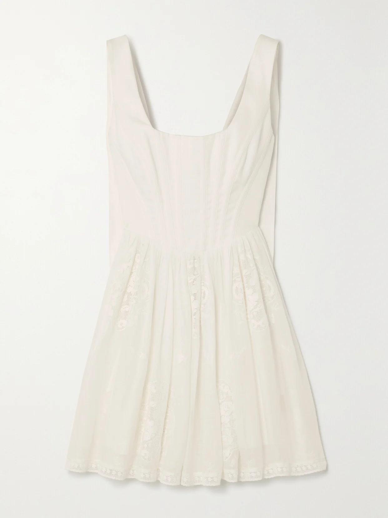 Zimmermann's dresses are what dream wardrobes are made of. This 'Alight' mini is cut from ramie and has a bustier-style bodice inspired by corsetry and soft pleats through the skirt. Delicate lace trims enhance its romantic feel.