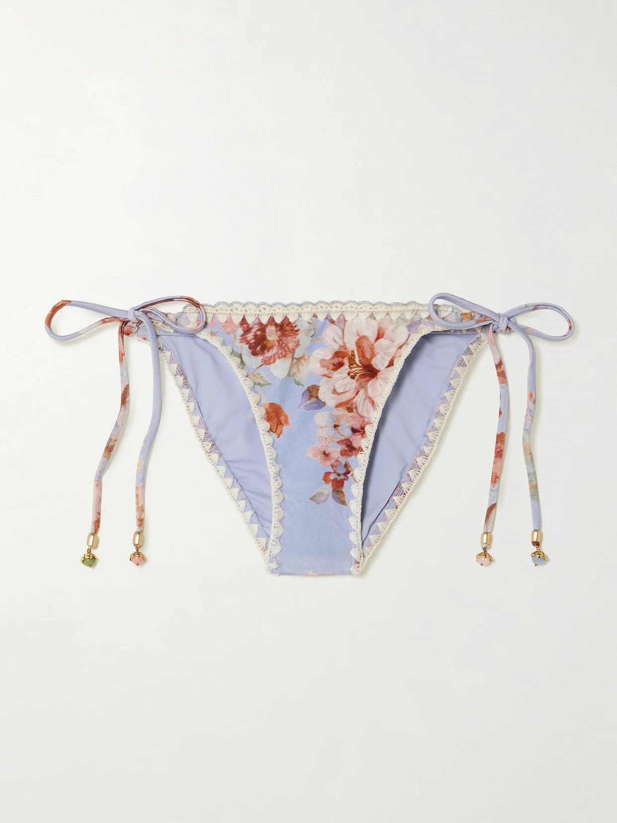 Awaken Crochet-trimmed Embellished Floral-print Bikini Briefs