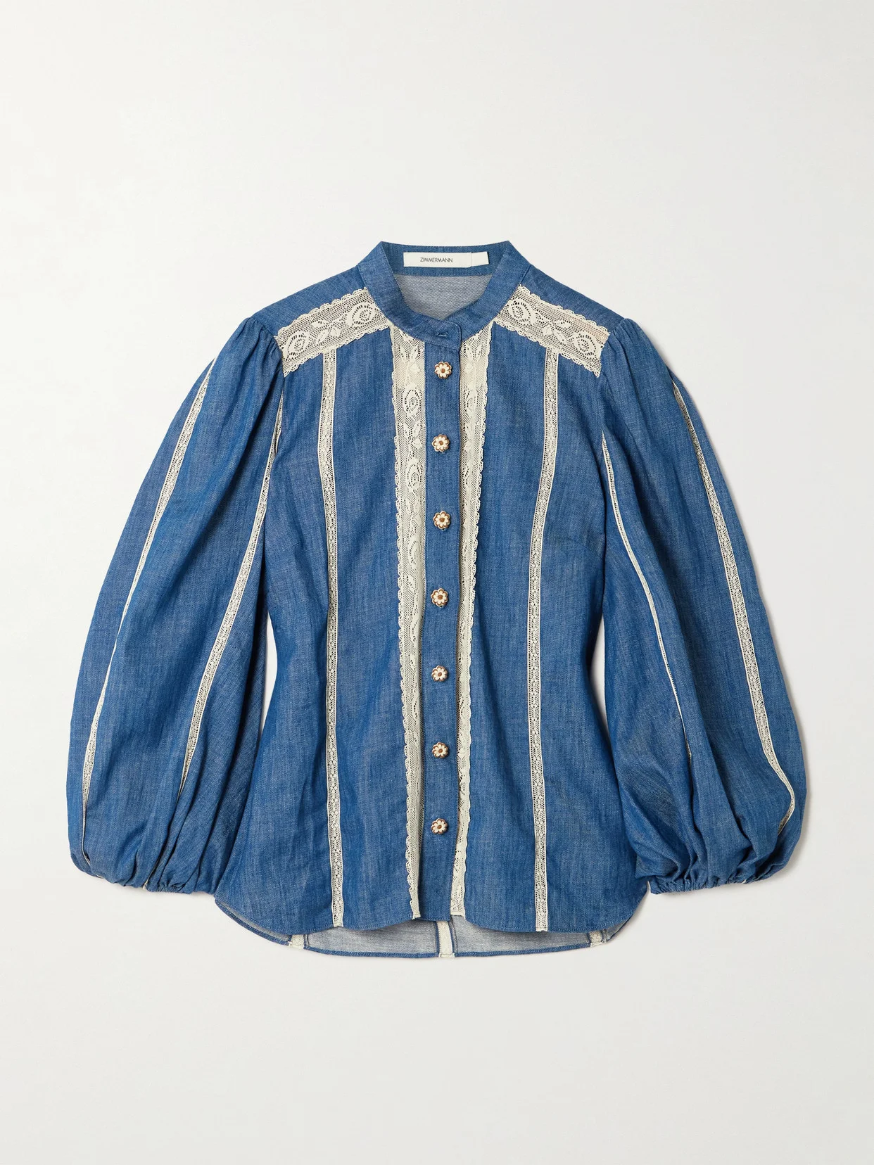 Zimmermann's 'Awaken' shirt is paneled with delicate lace, so it feels more pretty than utilitarian. Made from denim, it has a stand collar, billowy sleeves and fastens with crocheted flower buttons. We have the matching shorts in our edit, too.
