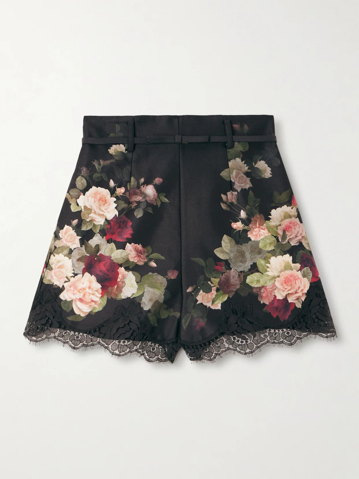 Belted Lace-trimmed Floral-print Silk And Cotton-blend Twill Shorts