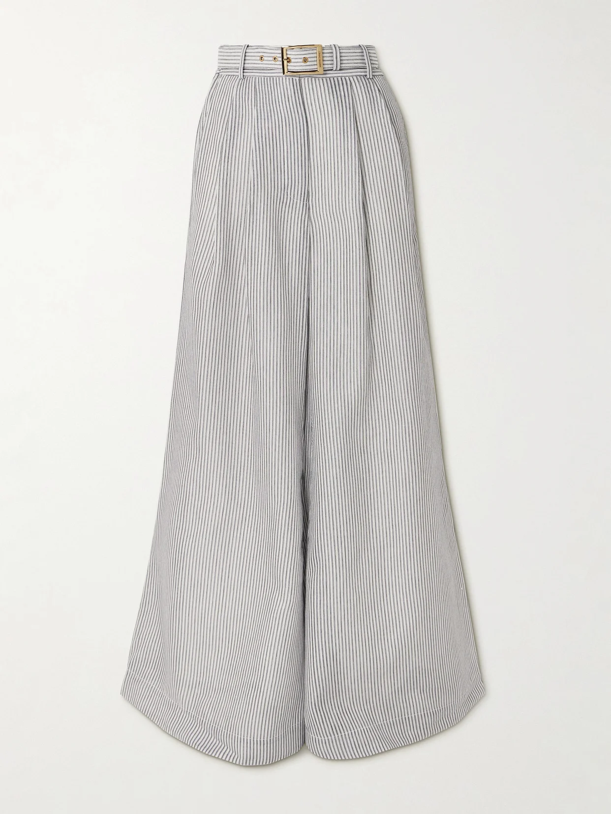 Belted Striped Cotton And Silk-blend Wide-leg Pants