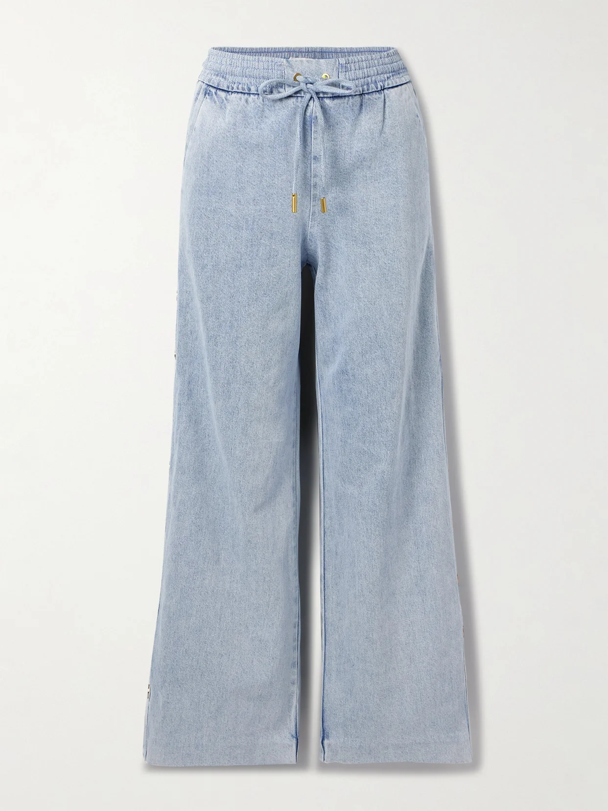 Zimmermann's jeans have gold-tone snaps along the wide legs, which can be adjusted to your preference. They're cut from light-wash denim and have metal-tipped drawstring ties. Wear yours with one of the brand's feminine blouses.