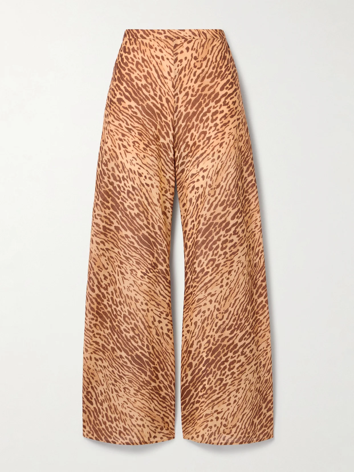 Zimmermann's 'Cascadian' pants are printed with an array of bold leopard spots. Cut from crisp cotton-poplin, they sit high on the waist and have wide legs that flare gently at the hem.