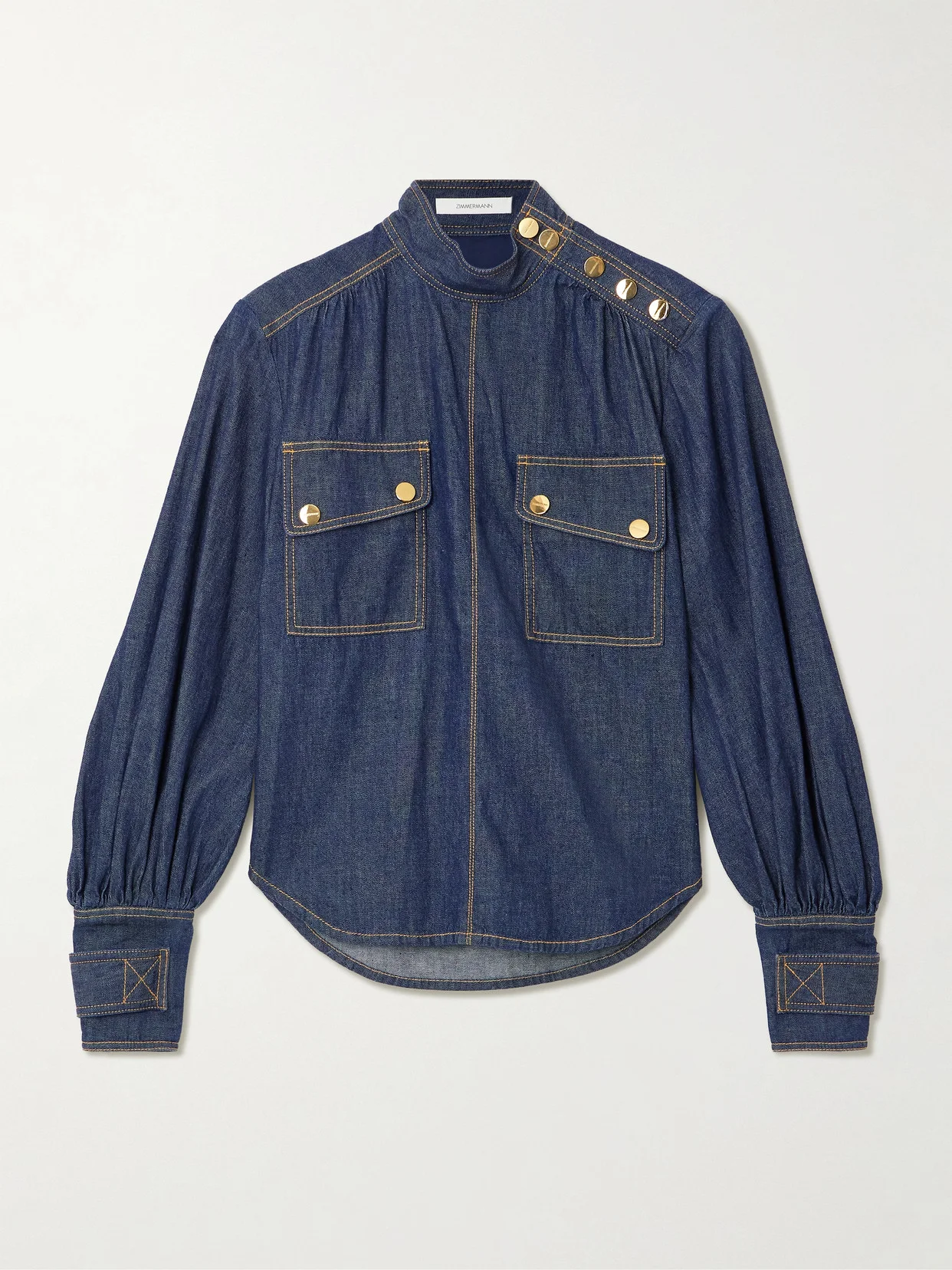 Zimmermann's blouse balances utility with the label's signature romantic touch. Cut from denim, it's defined by voluminous sleeves and has gold-tone button fastenings, which are etched with the brand's logo. Style yours with the matching skirt to recreate the runway look.