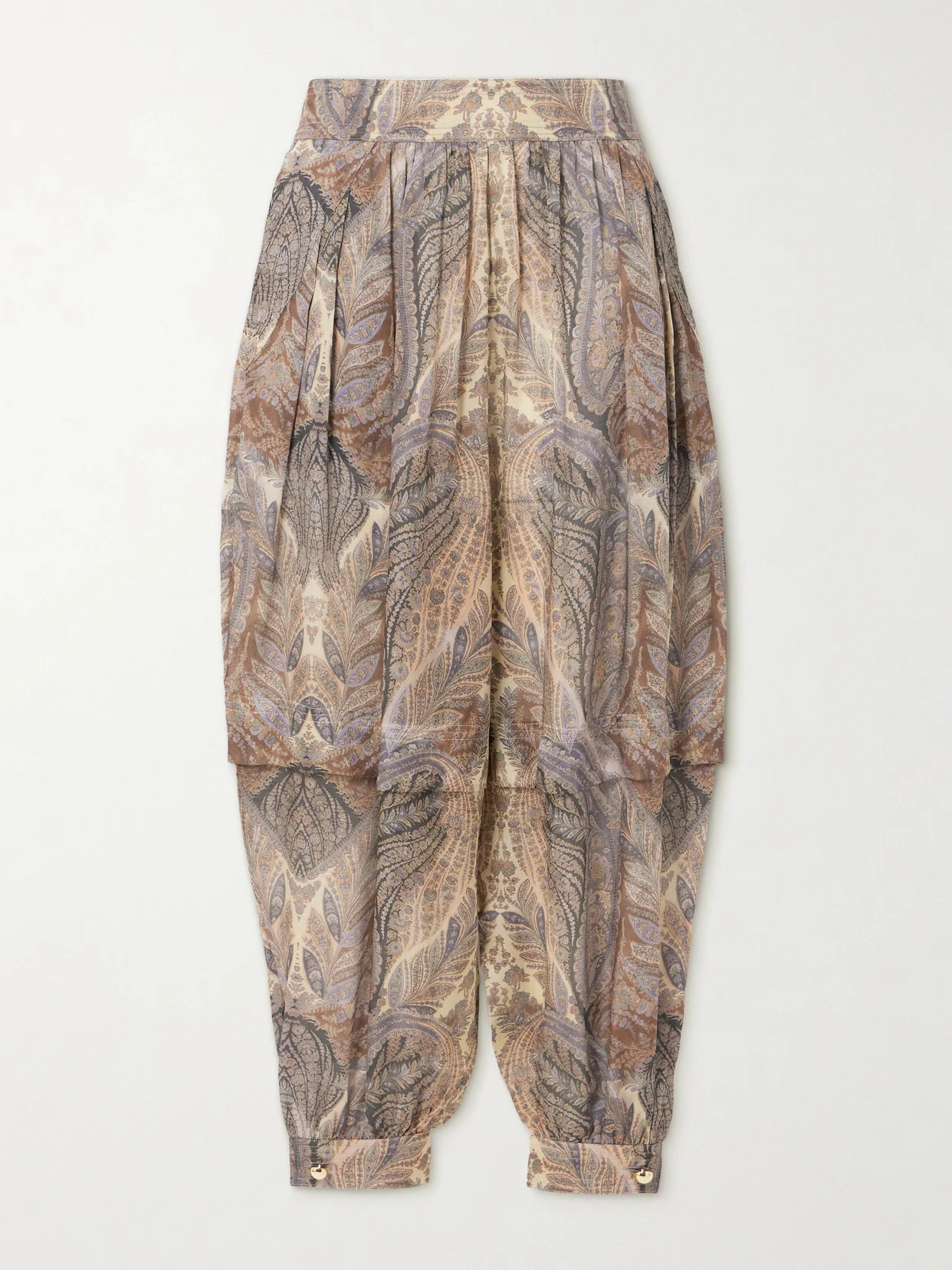 Hypnotic Layered Pleated Paisley-print Silk Tapered Pants